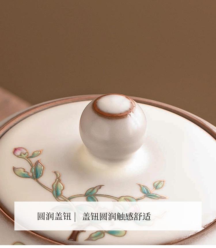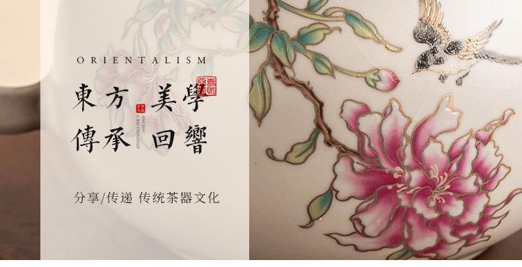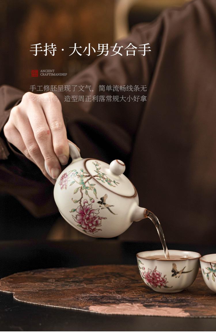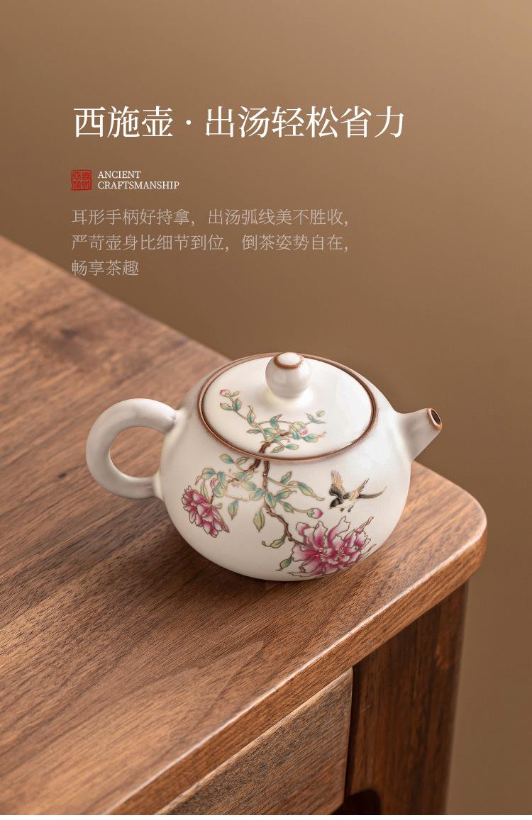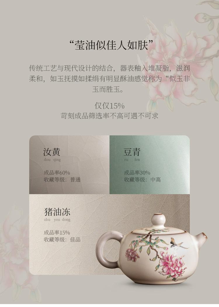 Ru kiln·lard jelly drawing gold peony flower_xi shi pot one pot two cups [simple decoration]