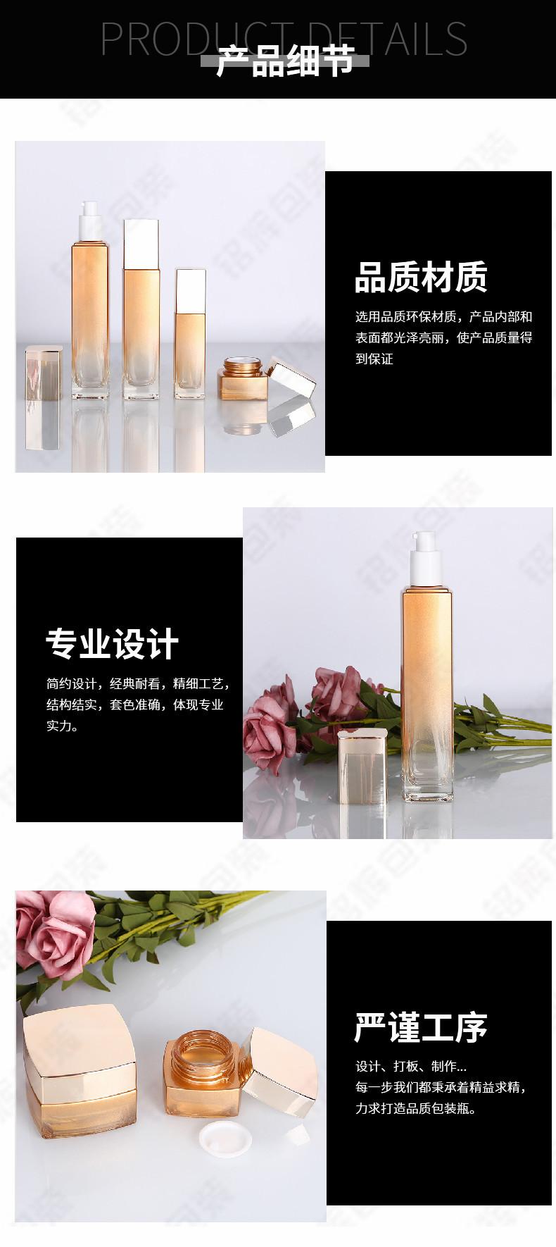 Conjunto de Frascos Vazios para Produtos de Cuidados com a Pele Frasco Quadrado para Essência Dourado Frasco de Vidro para Creme 50g Frasco com Válvula Pump para Loção Personalização