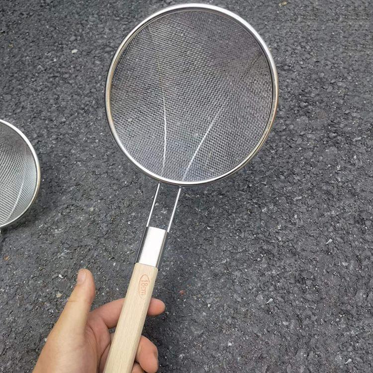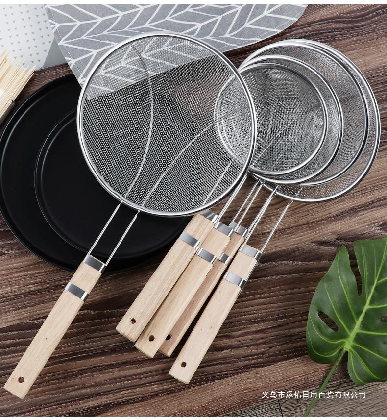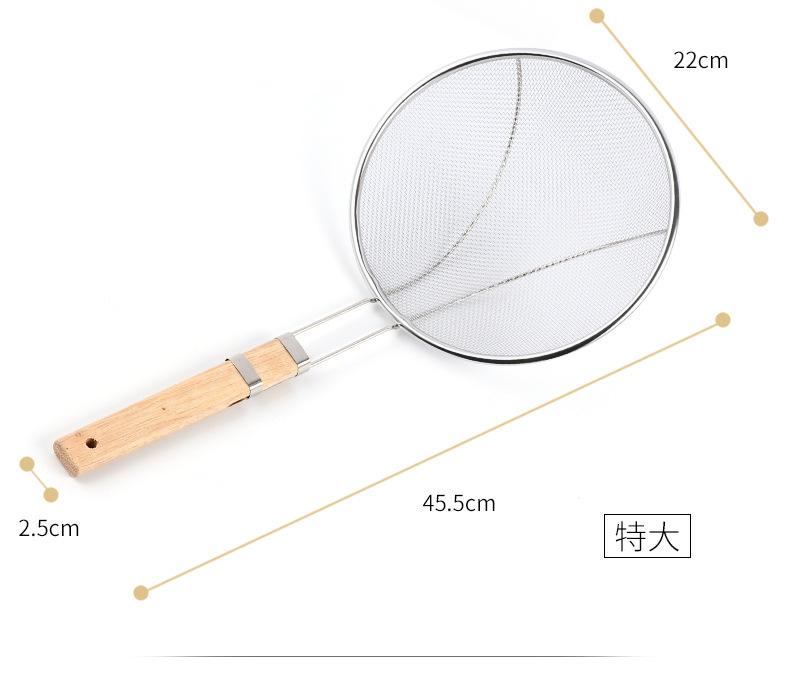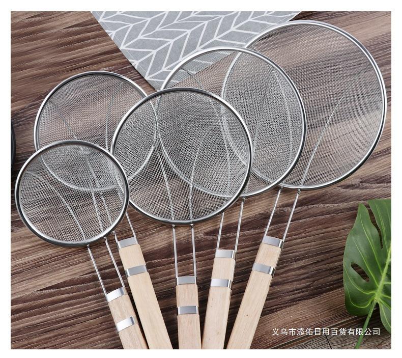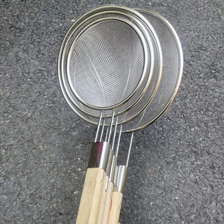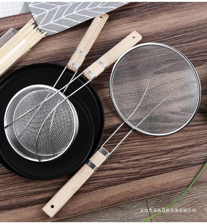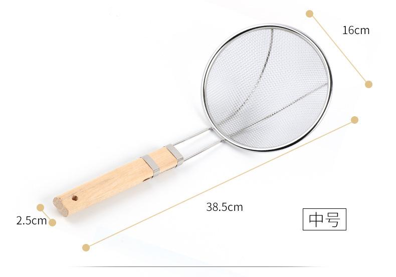 Cabo de madeira de aço inoxidável, peneira reforçada com fio duplo, tipo de filtro, vazamento de malha de filtro, macarrão frito, vazamento de malha de malha de 12, grade de óleo