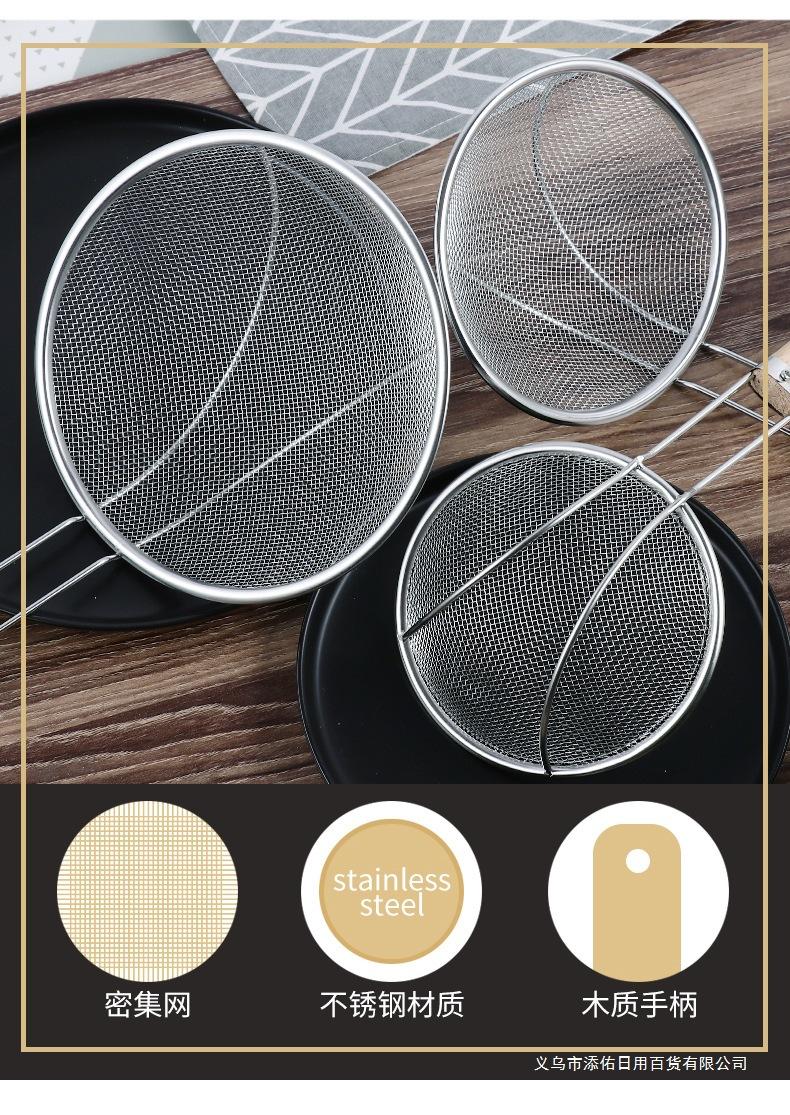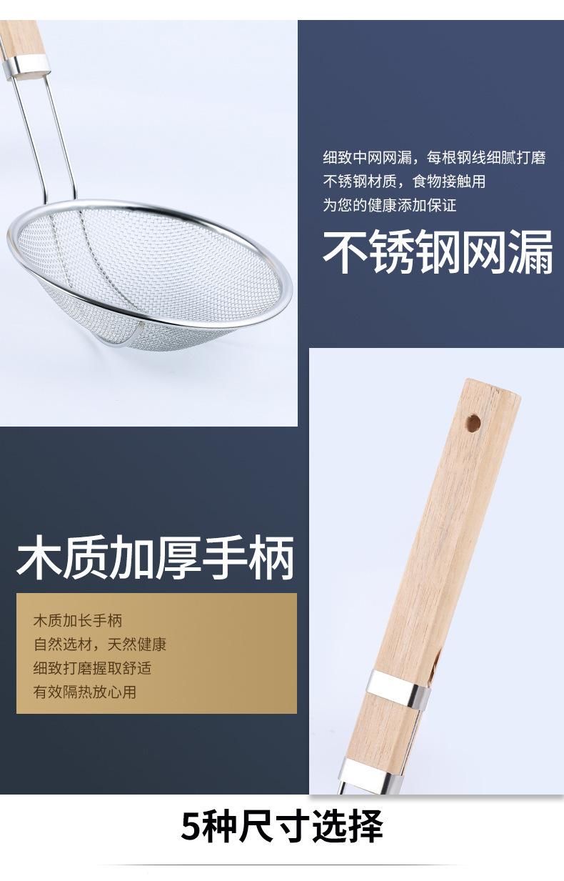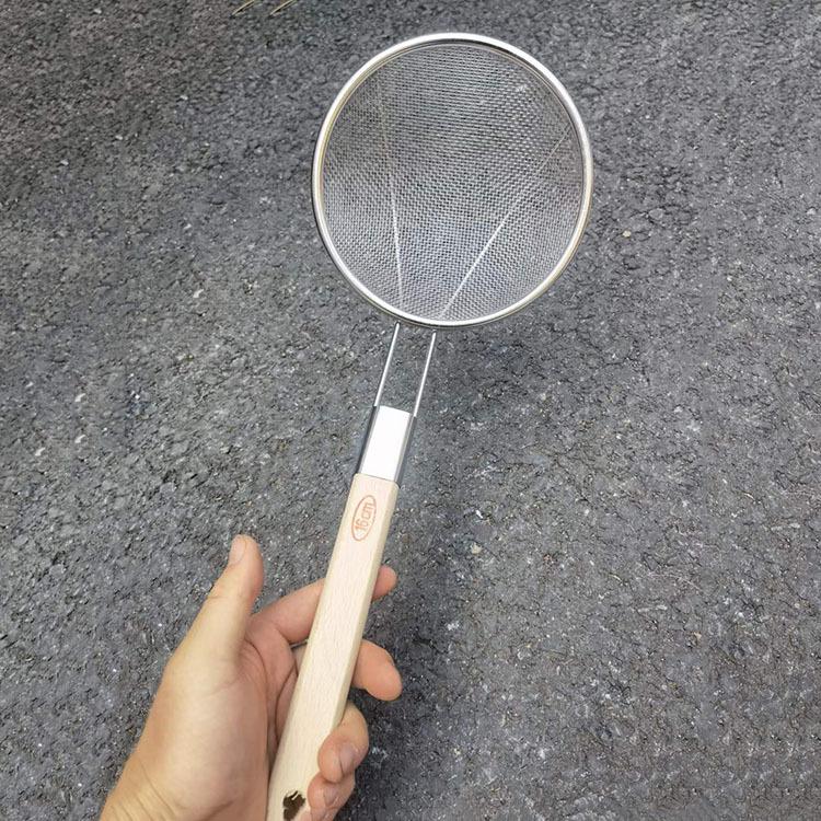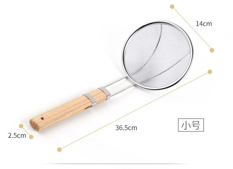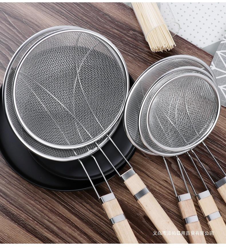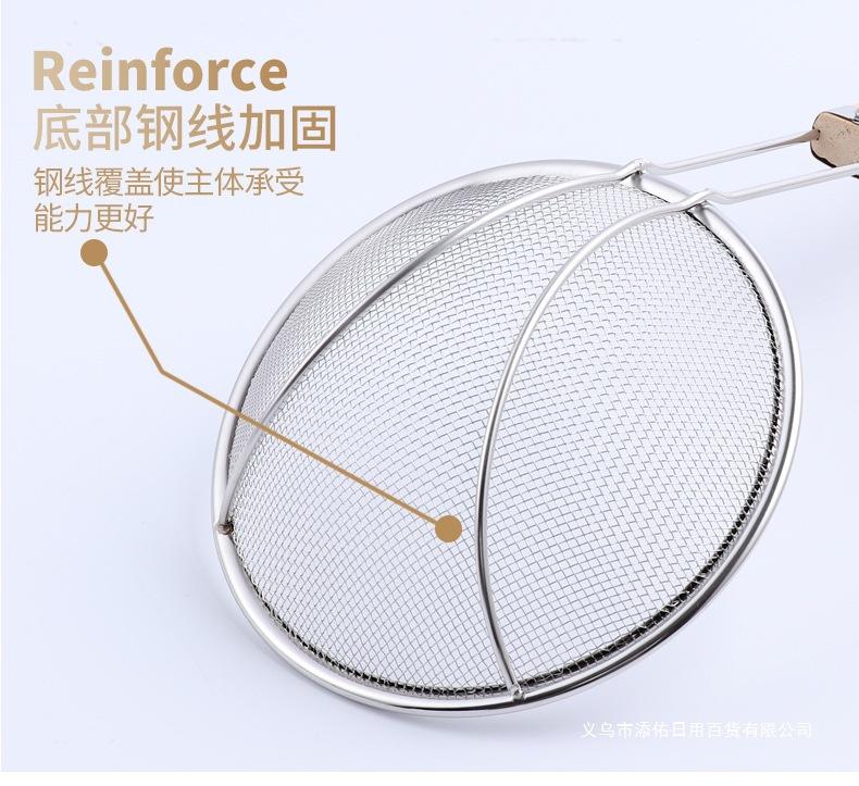Cabo de madeira de aço inoxidável, peneira reforçada com fio duplo, tipo de filtro, vazamento de malha de filtro, macarrão frito, vazamento de malha de malha de 12, grade de óleo