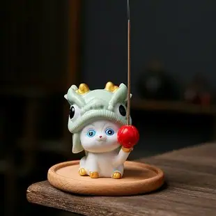 Gato Cerâmico Incenso Leão Pequeno Animal Inserir Casa Interior Cerâmica Bambi Porta Incenso Objeto Pet de Chá Pequeno Ornamento