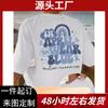2025 Comércio exterior europeu e americano nova estampa de letras manga curta gola redonda top casual diário feminino