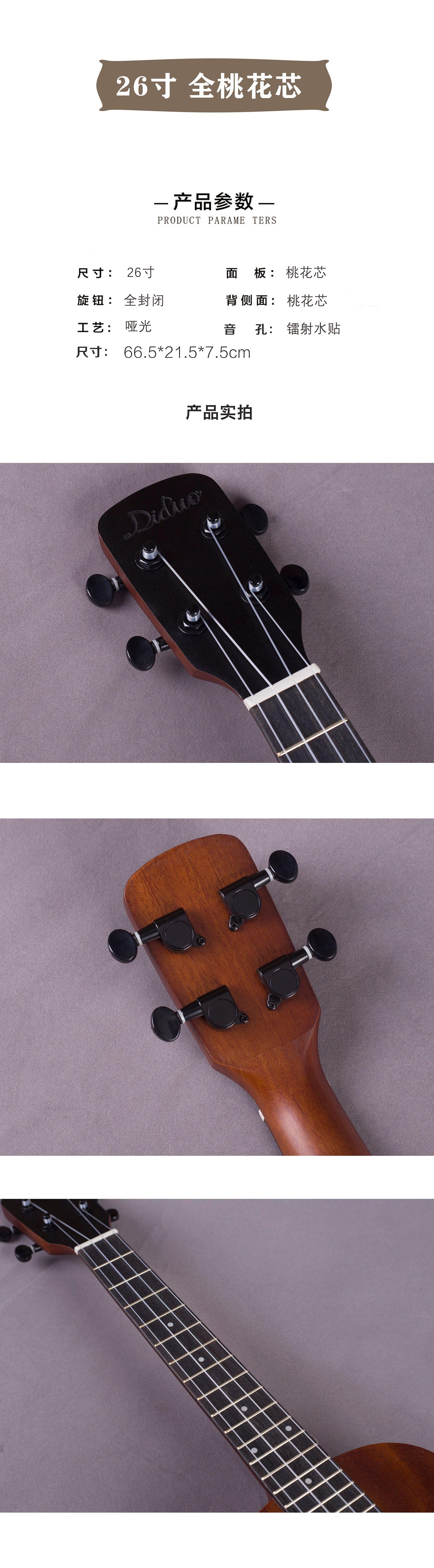 Ukulele de 26 polegadas com núcleo de flor de pêssego, ukulele retrô, guitarra pequena, ukulele