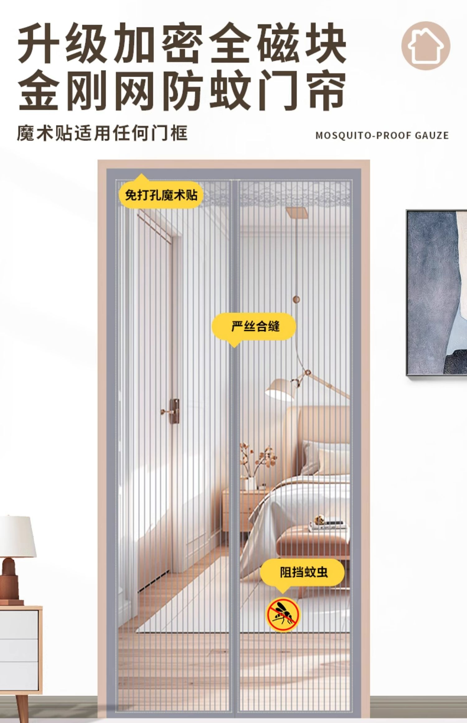 Cortina de porta anti-mosquito com velcro, tela magnética para porta de verão, mosquiteiros autoabsorventes, ímã, novo estilo 2025