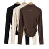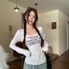 Outono quente menina rua simples cor estrela bordado raglan manga longa camisa sexy magro curto camiseta atacado