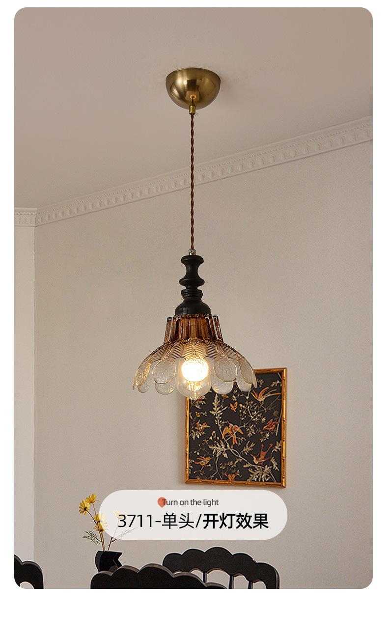 Lustre de restaurante em estilo medieval, lustre pequeno de cabeceira retrô americano, iluminação de bar simples de madeira maciça e vidro criativo personalizado