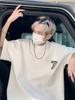 Camiseta masculina de manga curta estilo americano, de marca da moda, de algodão pesado, com meia manga, solta, plus size, camiseta masculina