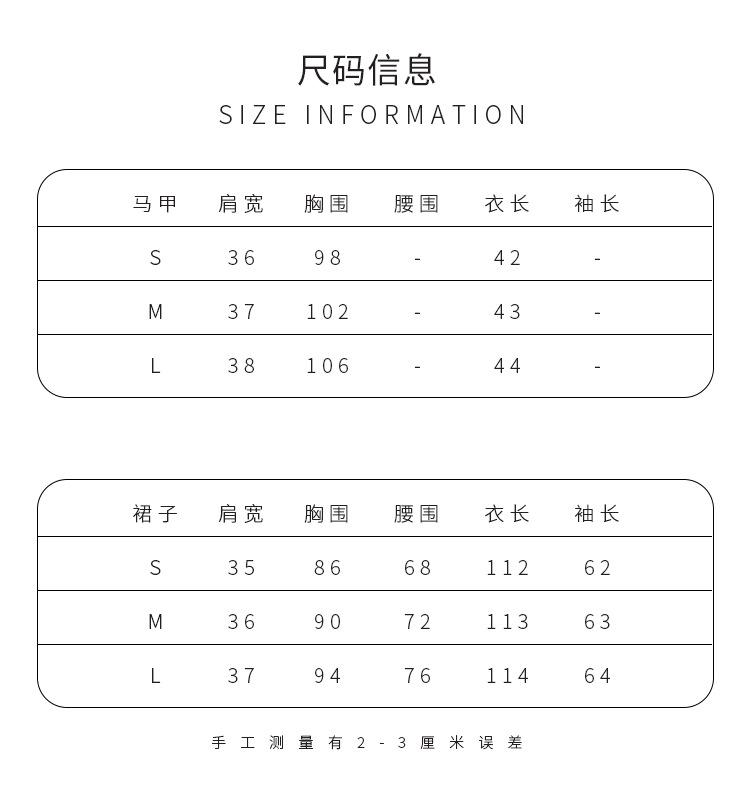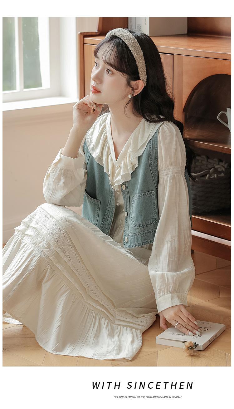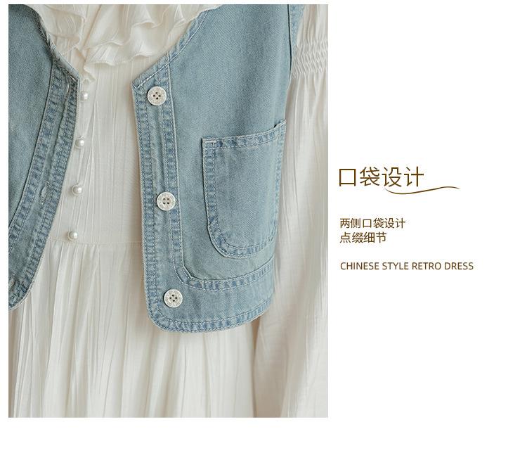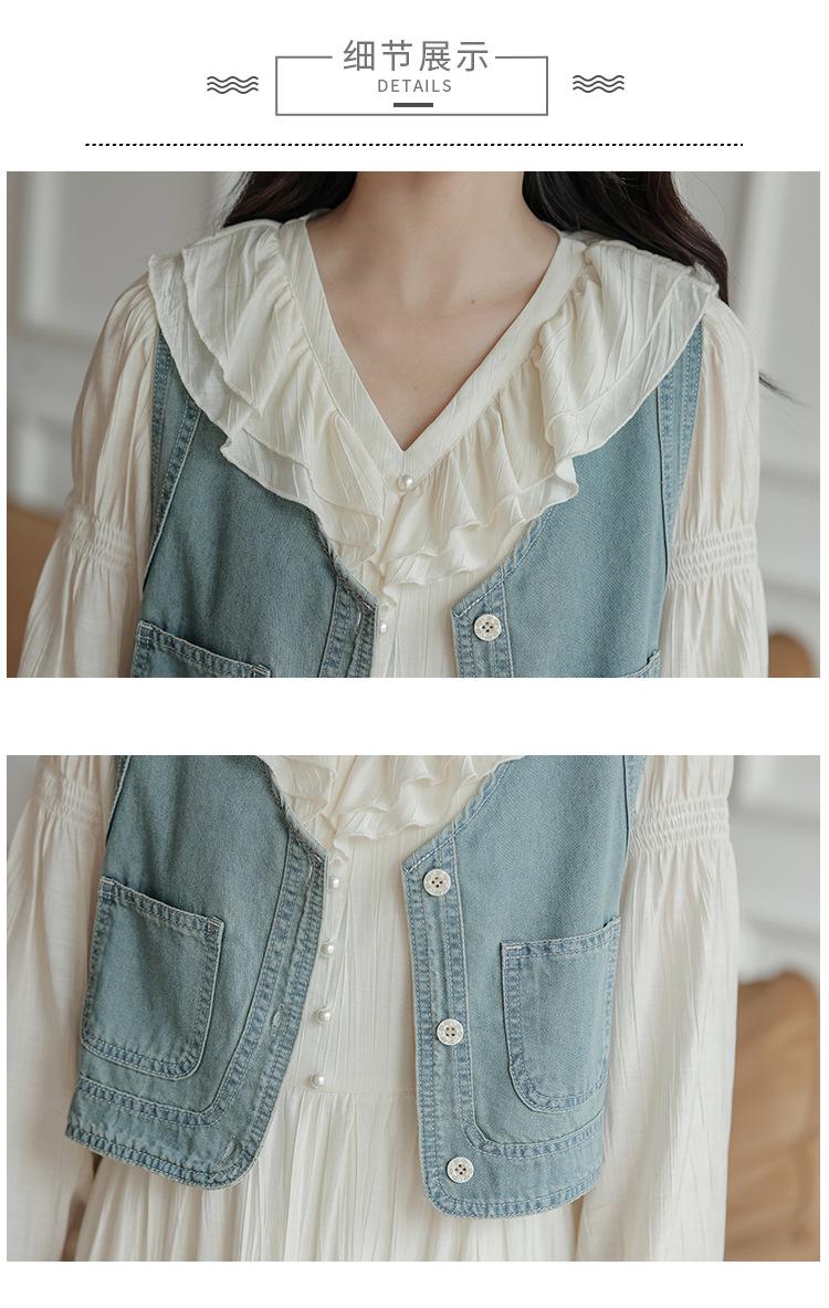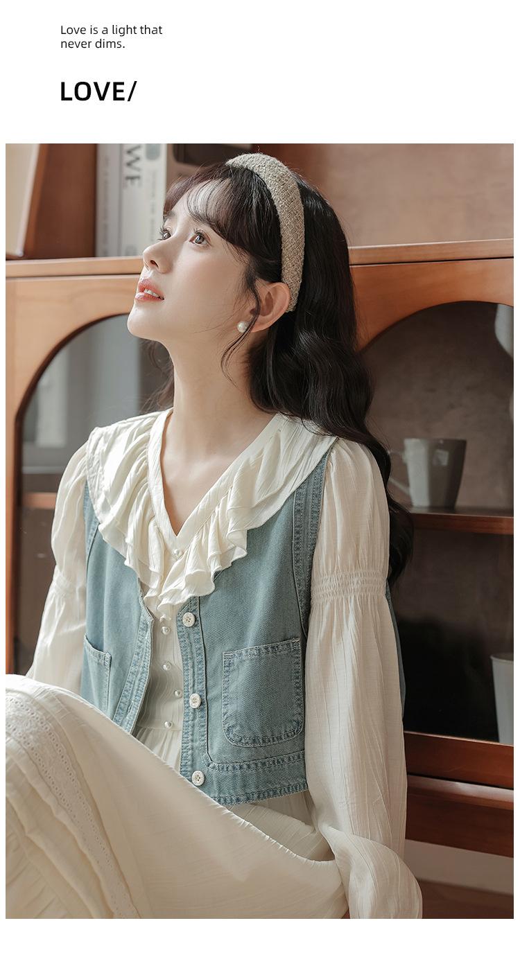 Blue vest, Apricot dress