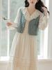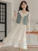 Vestido francês romântico Crazy Heart Sweet Beauty, primavera e outono, novo vestido que cobre a barriga e reduz a idade