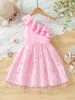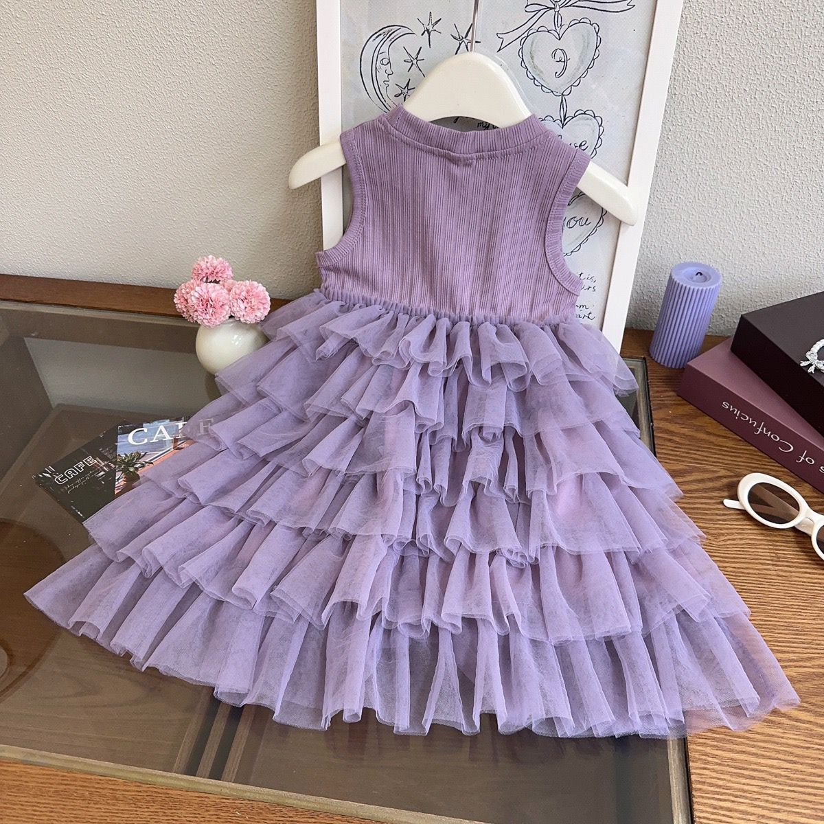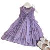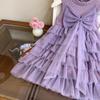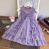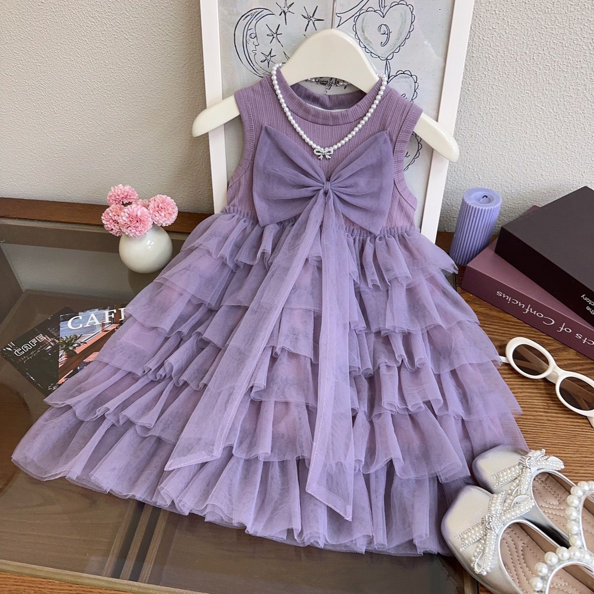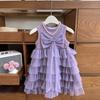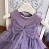 Vestido de princesa para meninas, verão, novo, 2025, vestido de malha com laço grande, vestido de aniversário para meninas