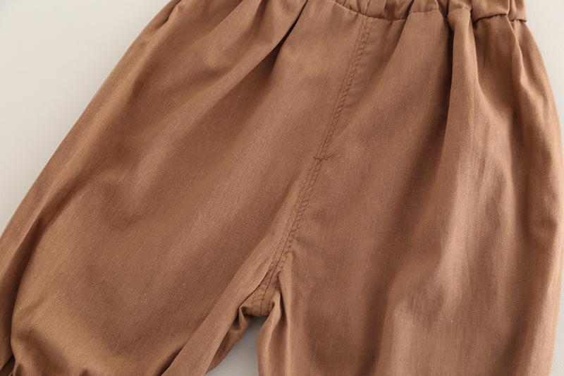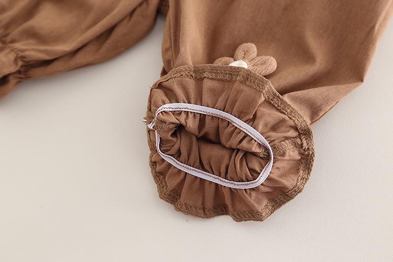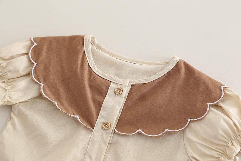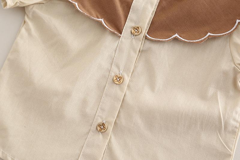 Khaki wavy doll collar short-sleeved suit, Brown wavy doll collar short sleeve suit