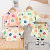 Terno de verão para meninas 2025 Nova moda elegante para bebês Camisa de manga curta Conjunto de duas peças da moda infantil para o verão
