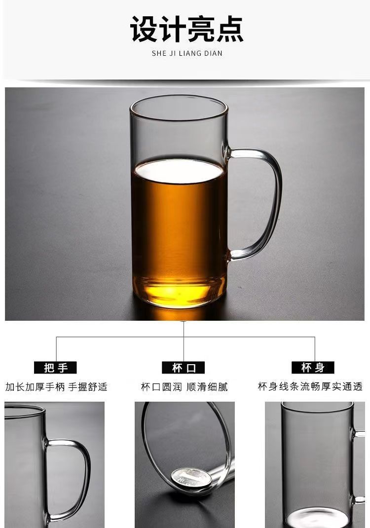 Compre Copo de chá resistente a altas temperaturas, grande capacidade, copo de cerveja, copo de chá verde de borosilicato doméstico, cor espessada com alça, copo de vidro no atacado no Joom.pro