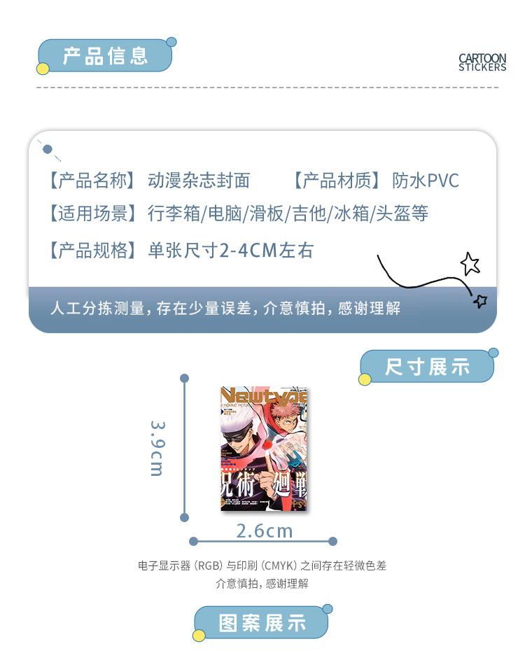 126 Adesivos de capa de revista de animação japonesa, adesivos secundários de desenho animado para celular e iPad à prova d'água