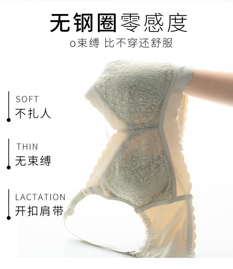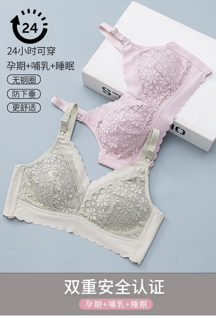 Íntimos de Maternidade, Sutiã de Amamentação, Push-Up Anti-Flacidez Seda Gelo Respirável Sutiã de Amamentação para Gravidez, Borda de Renda