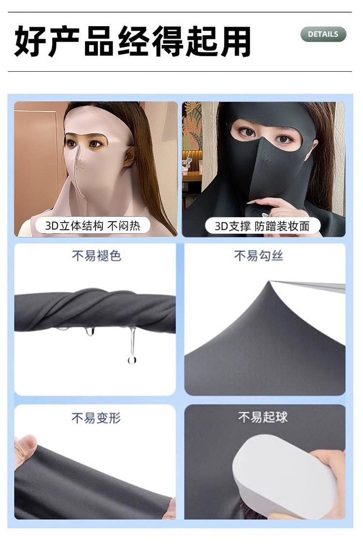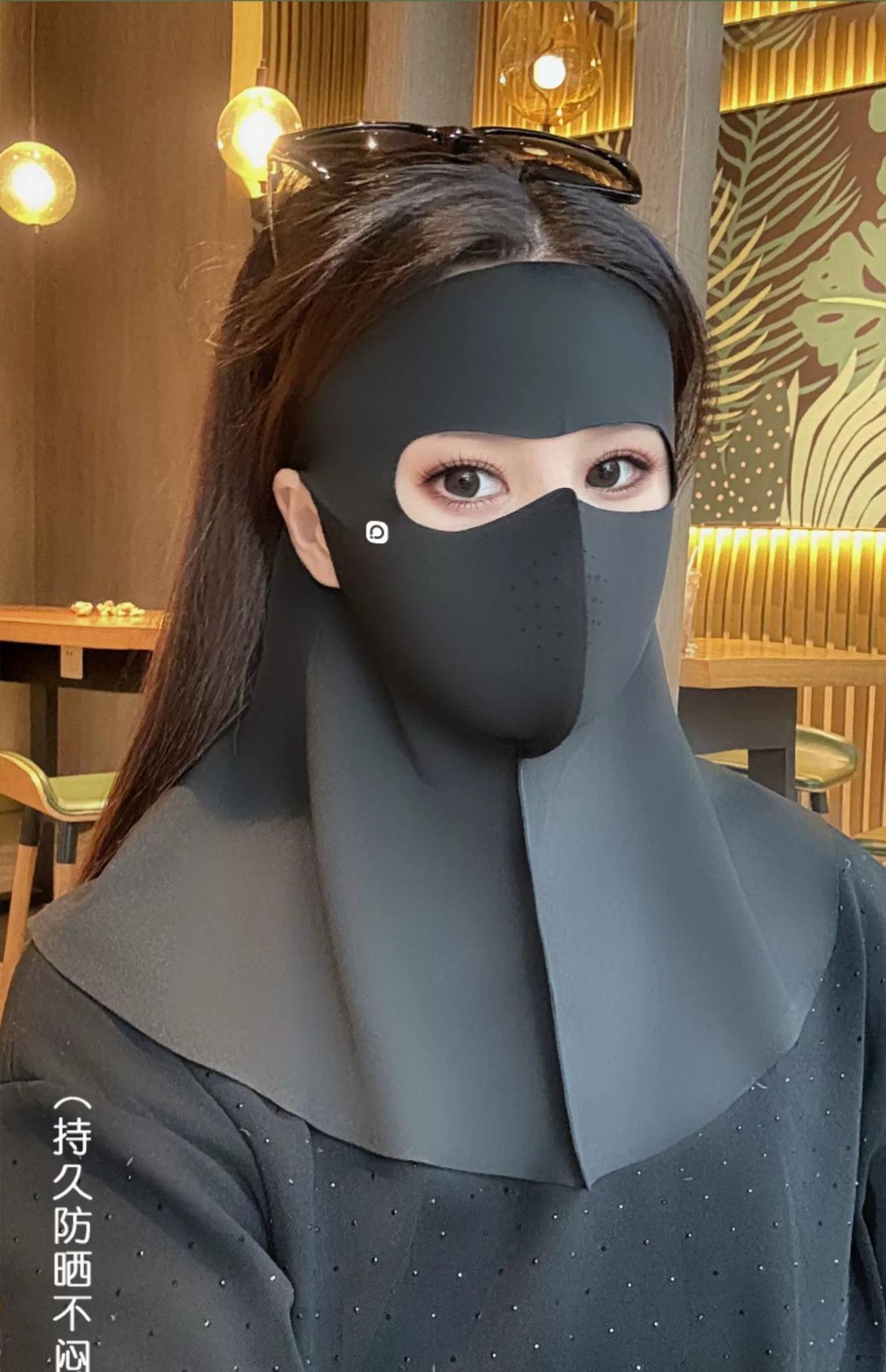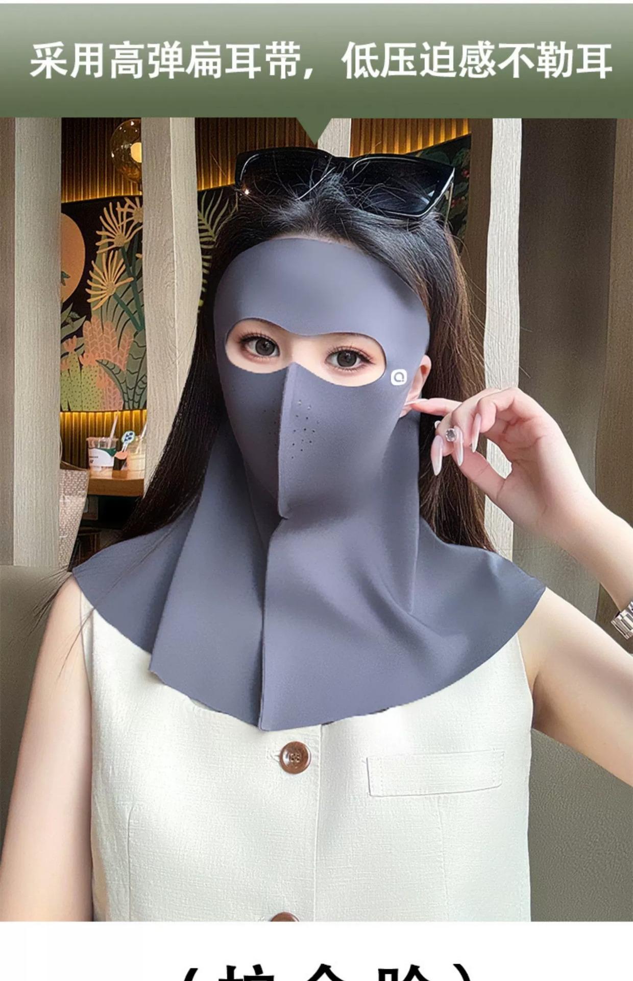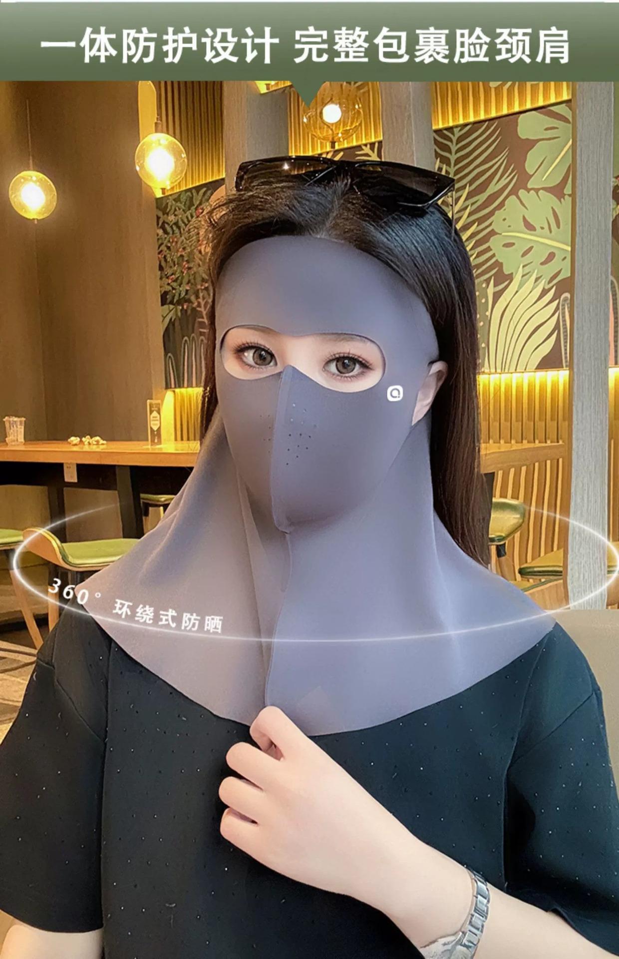 Máscara de Proteção Solar, Anti-UV, Máscara Facial Feminina de Rosto Inteiro de Alta Aparência, Proteção para o Pescoço, Máscara com Pala Integrada, Seda Gelo
