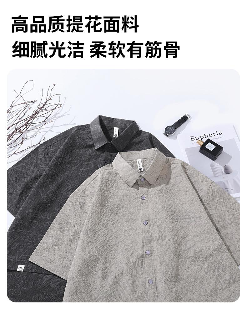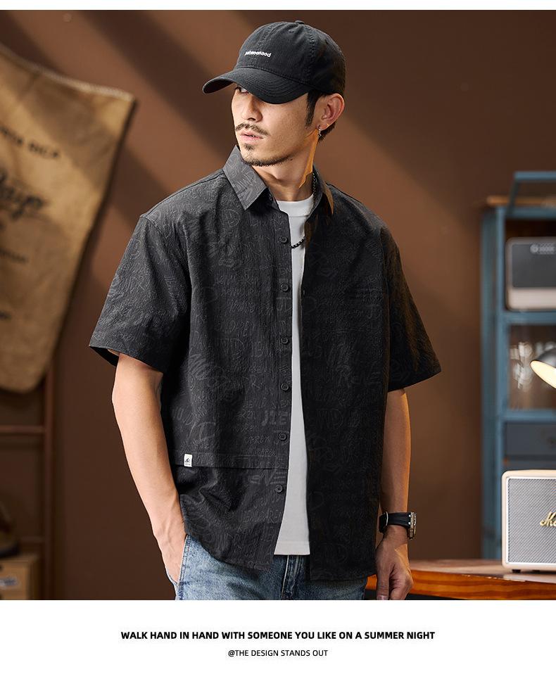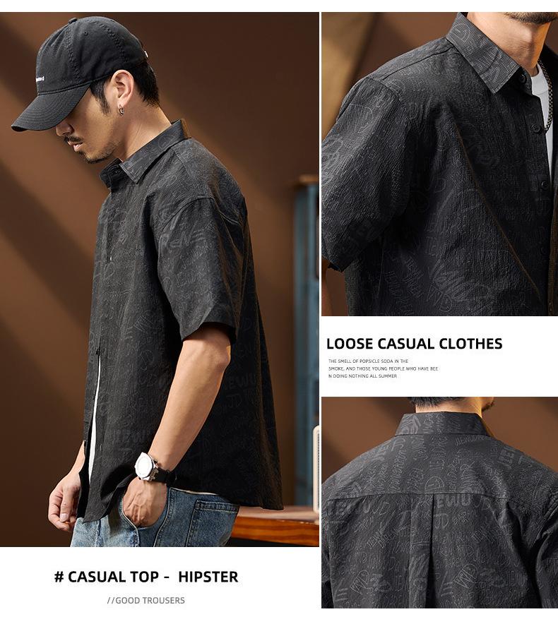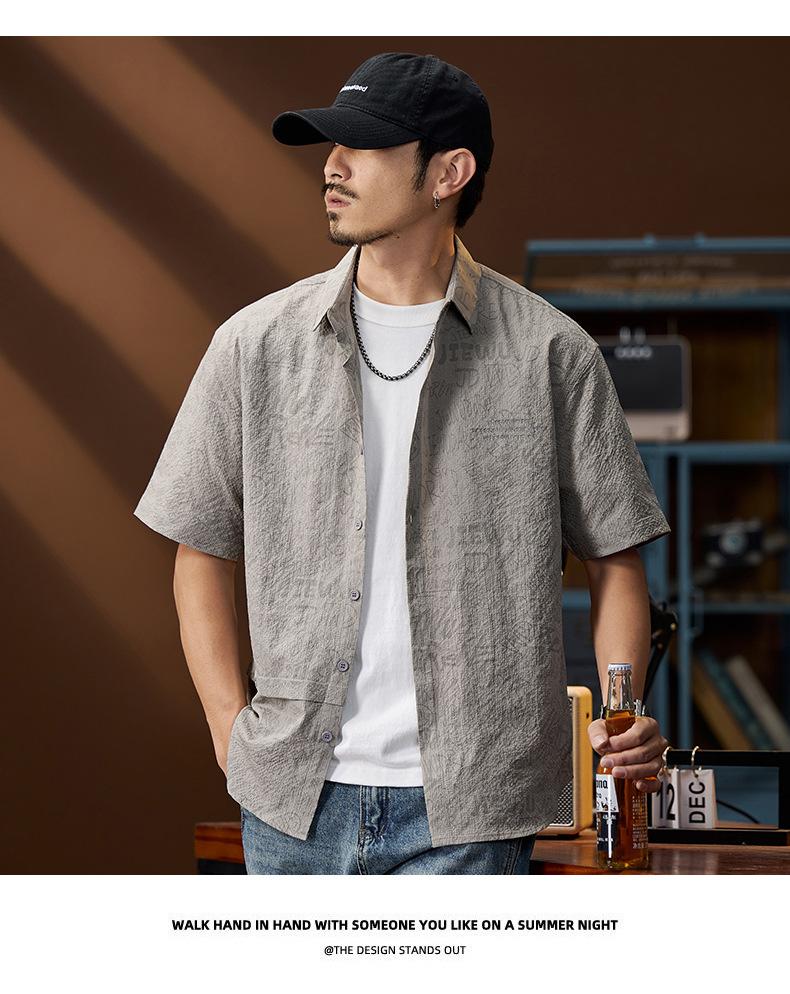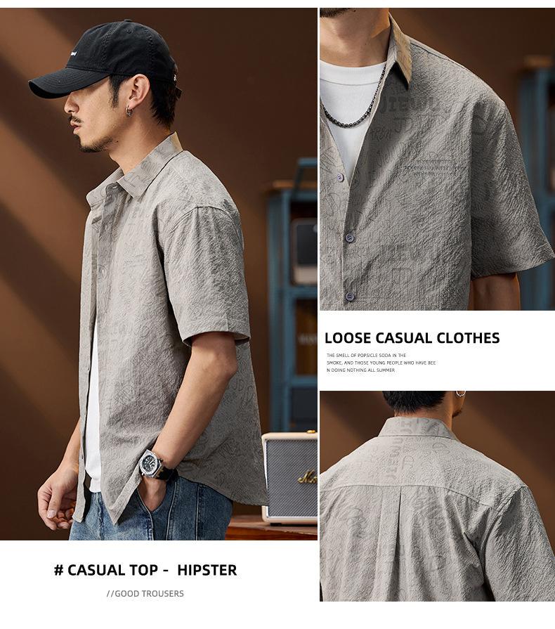 Camisa de Trabalho de Verão Jacquard Seda Gelo Estilo Masculino Verão Lapela Solta Casual Versátil Manga Curta Masculina