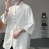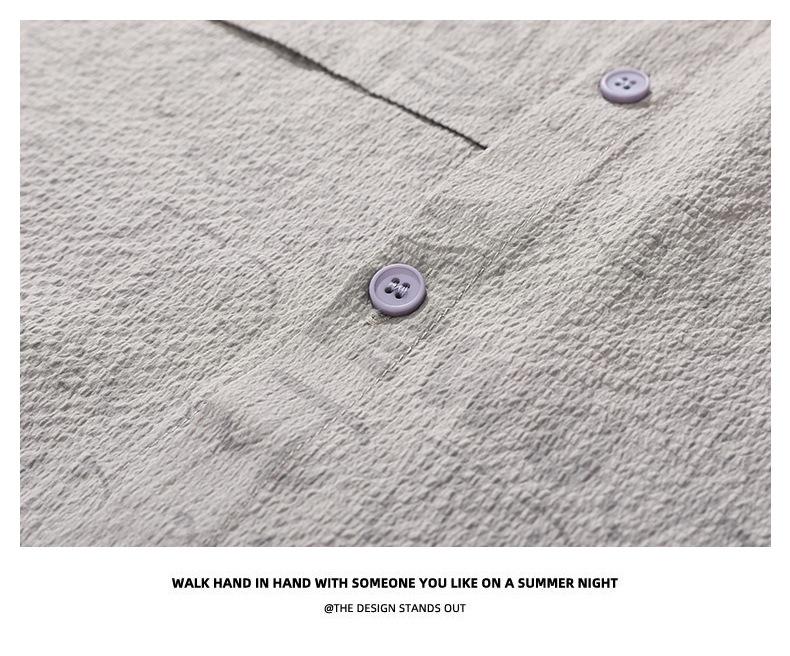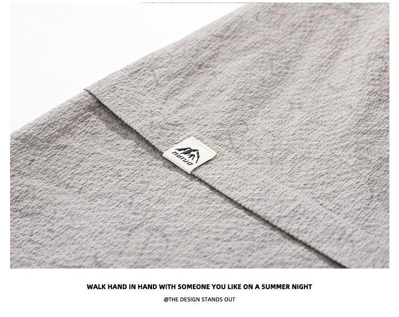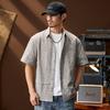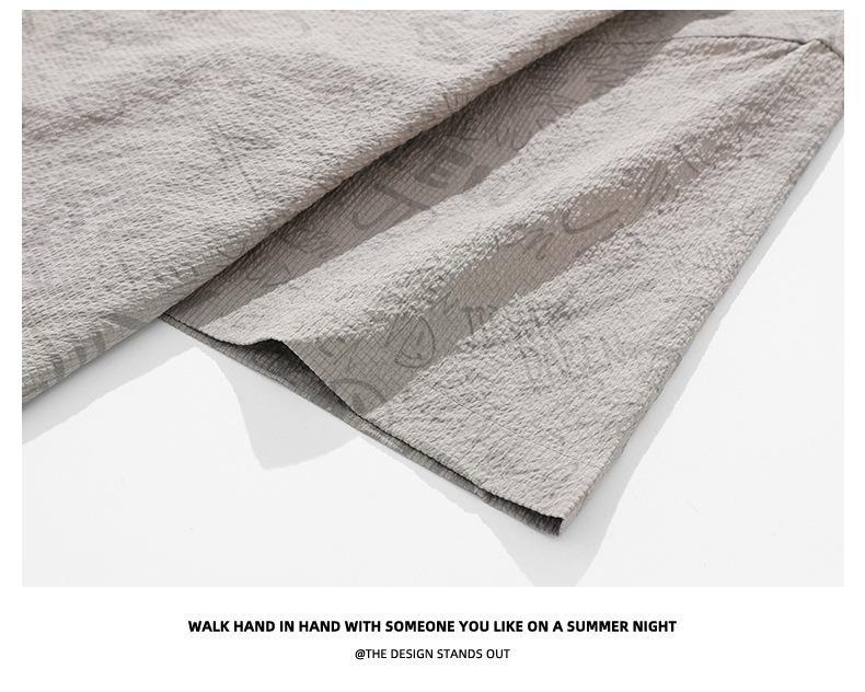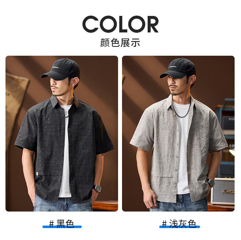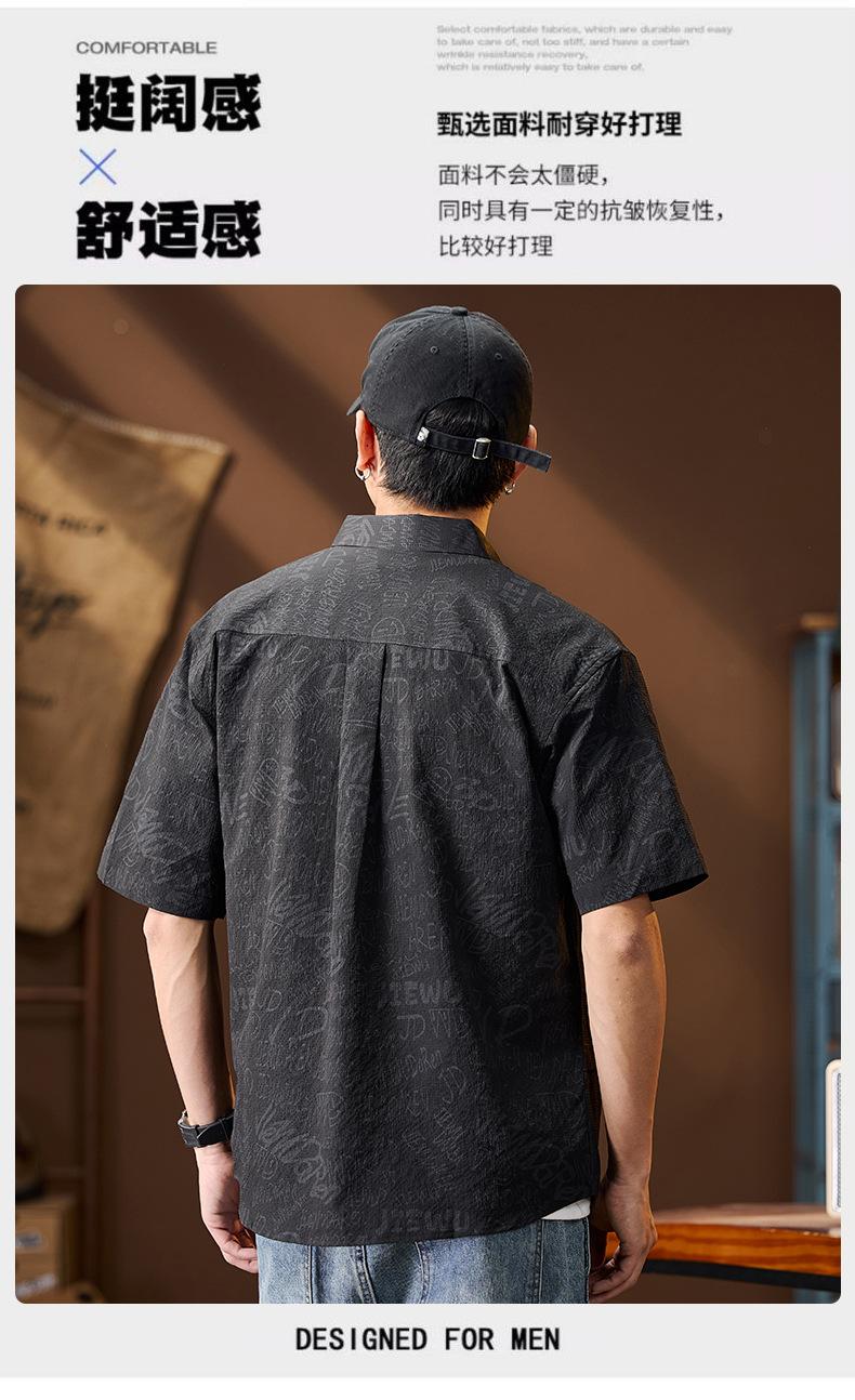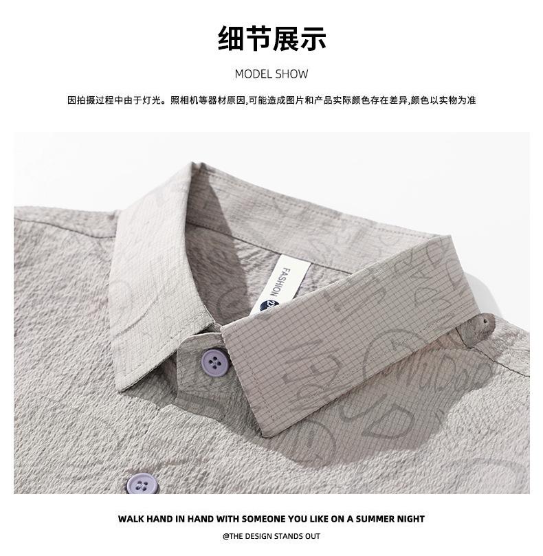 Camisa de Trabalho de Verão Jacquard Seda Gelo Estilo Masculino Verão Lapela Solta Casual Versátil Manga Curta Masculina