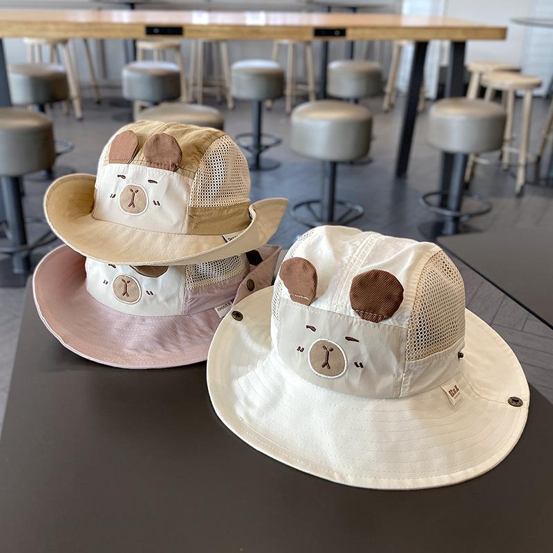 Chapéu Infantil Verão Malha Fina Respirável Chapéu de Pescador Aba Larga Sombreamento Solar Protetor Solar Secagem Rápida Montanhismo Chapéu de Sol para Meninos