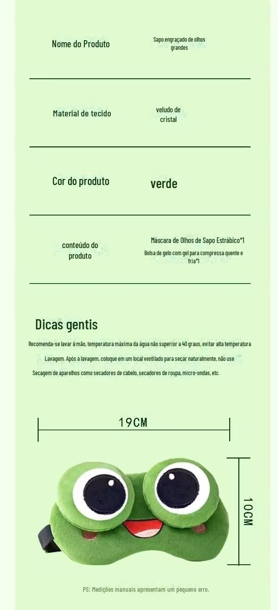 Máscara de olho de sapo fofa para homens e mulheres, máscara de dormir infantil respirável para aliviar a fadiga ocular, compressa fria e quente, máscara de sombreamento para os olhos