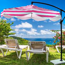 Guarda-chuva banana de pano listrado impermeável com manivela manual, armação de ferro, borda curva, listras horizontais e verticais, base de mármore Yasili espessada