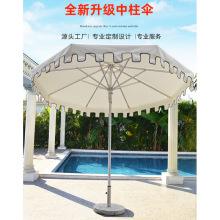 Guarda-sol de coluna central 38MM coluna central liga de alumínio corda de puxar guarda-sol de jardim para dias ensolarados e chuvosos bordas especiais off-white podem ser impressas