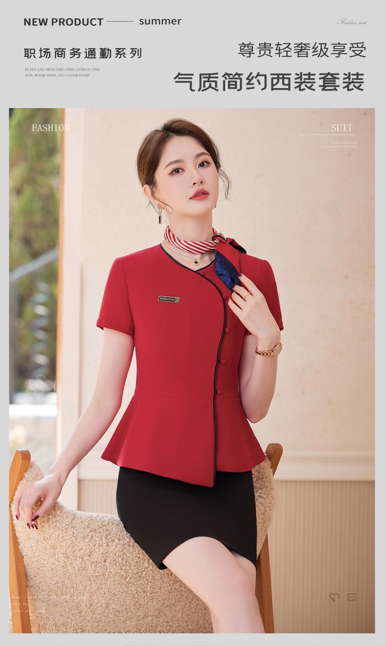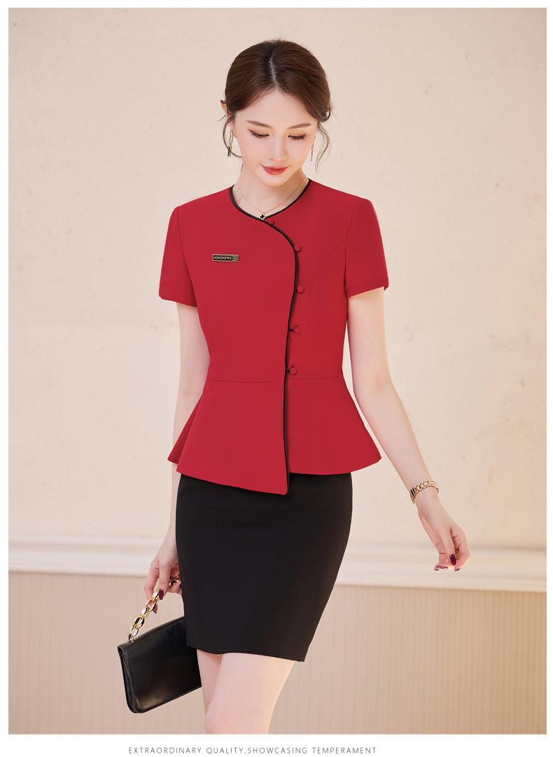 Compre Jaqueta vermelha de manga curta para verão, top, calça feminina, saia, terno de duas peças, verão 2025, novas roupas de trabalho da moda no atacado no Joom.pro