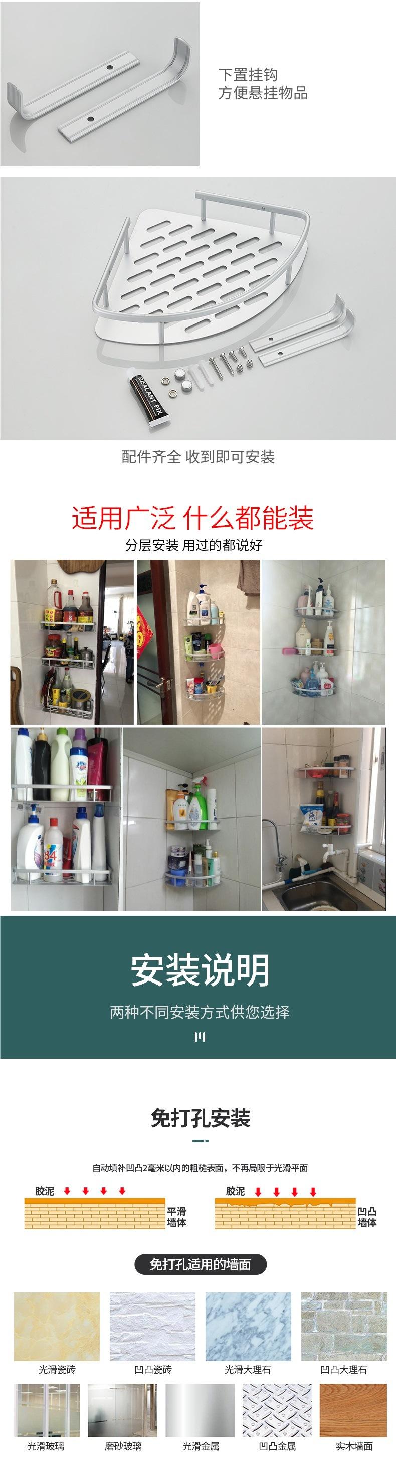 Rack de armazenamento de banheiro de vaso sanitário sem perfuração Vaso sanitário de camada única montado na parede Vaso sanitário Lavatório de vaso sanitário Rack de armazenamento triangular