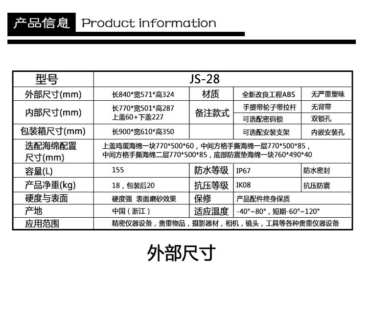 Wandebao JS-28 caixa vazia de plástico caixa de segurança caixa de equipamentos haste de tração segurança equipamento à prova d'água caixa de instrumentos caixa à prova de umidade
