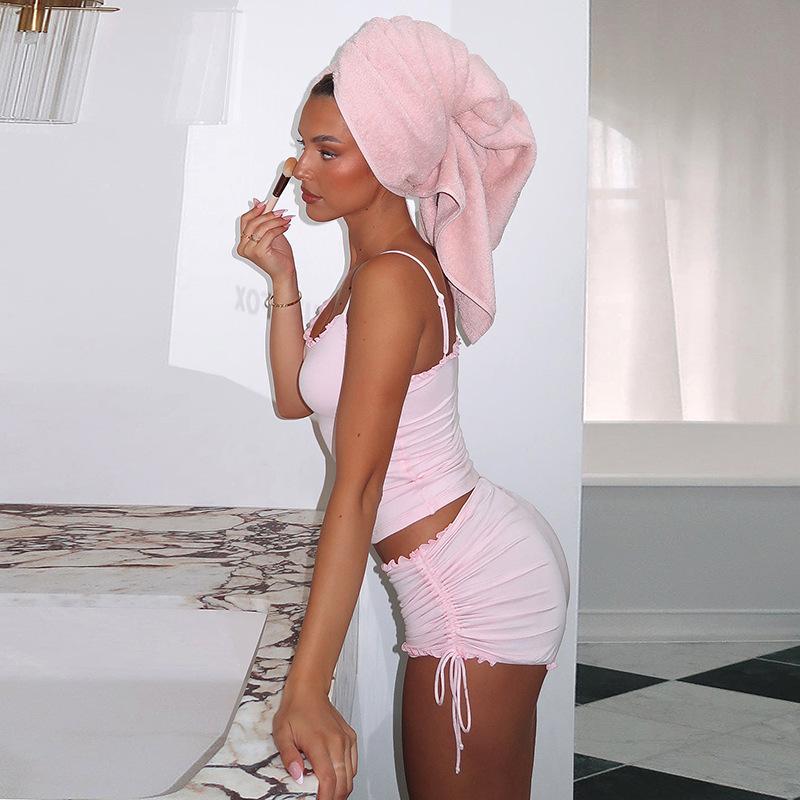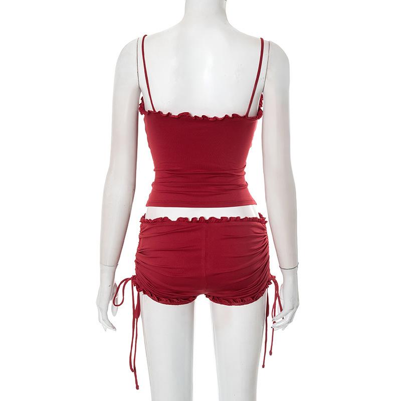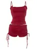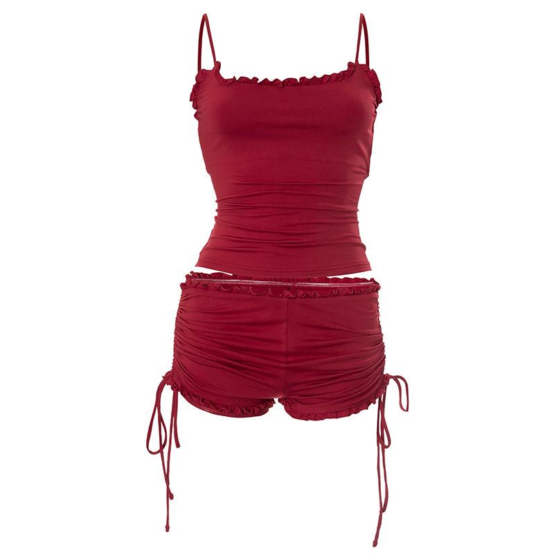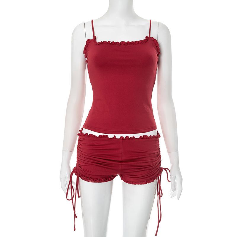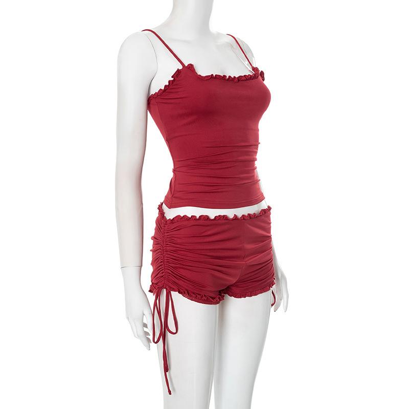 Europa e Estados Unidos verão transfronteiriço cor sólida novo sem mangas renda alça regata casual cordão plissado shorts terno atacado