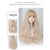 Peruca feminina cabelo longo cacheado fibra química cobertura total da cabeça moda europeia e americana franja de ar cabelo longo onda grande fábrica em estoque atacado