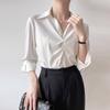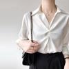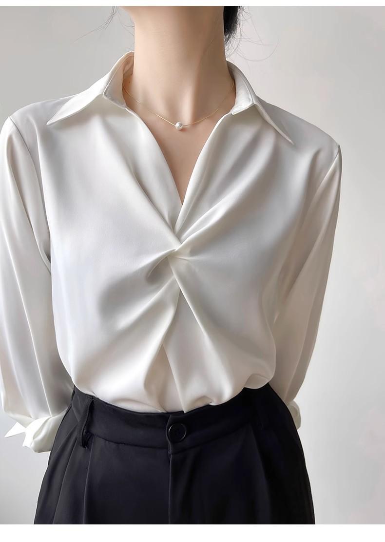 Compre Camisa branca feminina, início do outono de 2025, novo design, Sense Niche Commuter, top profissional de cetim com decote em V no atacado no Joom.pro
