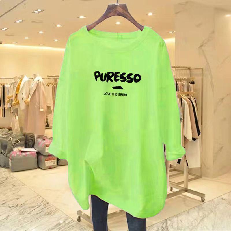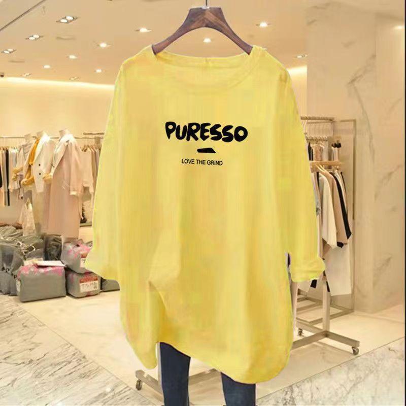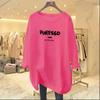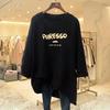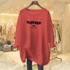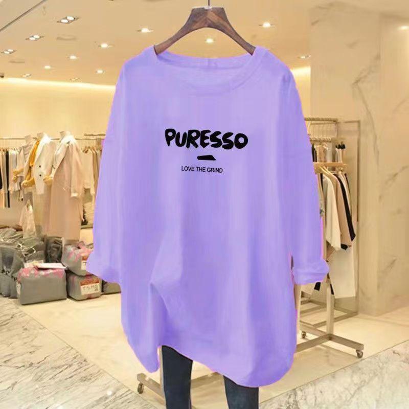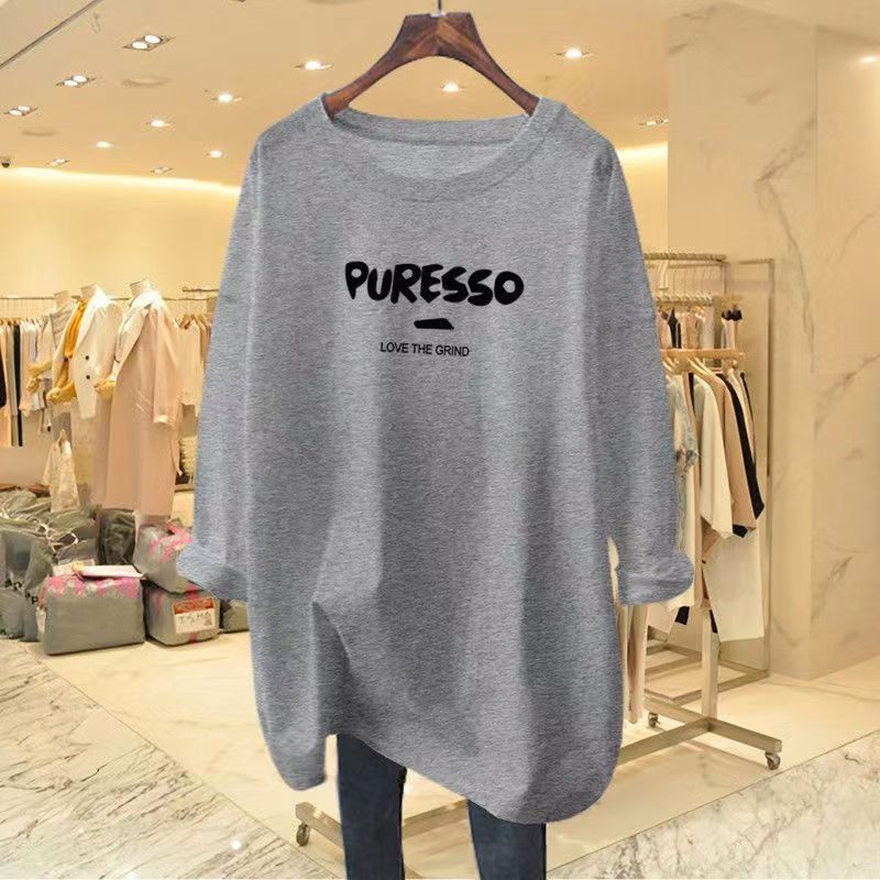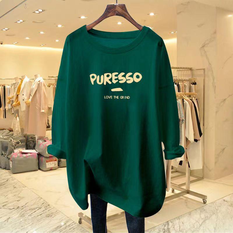 Camiseta feminina de manga comprida Simple Commuter, outono e inverno 2023, novas letras, gola redonda, solta, tamanho grande, para uso externo