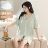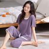Pijama Feminina Verão e Outono Modal Laço Confortável Roupa de Exterior Manga Curta Shorts Calças terno com Bojo Roupa de Casa