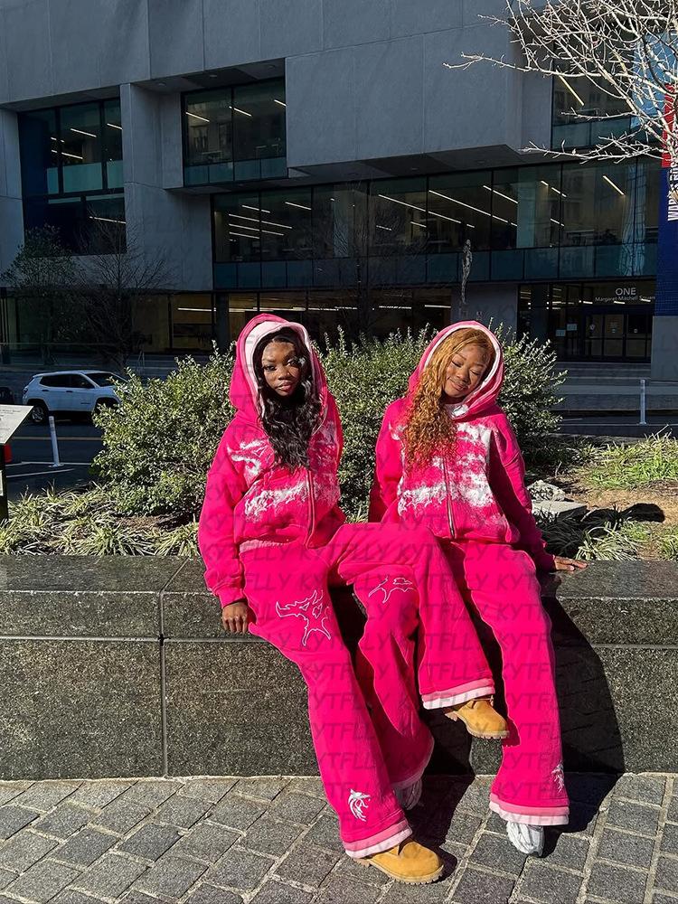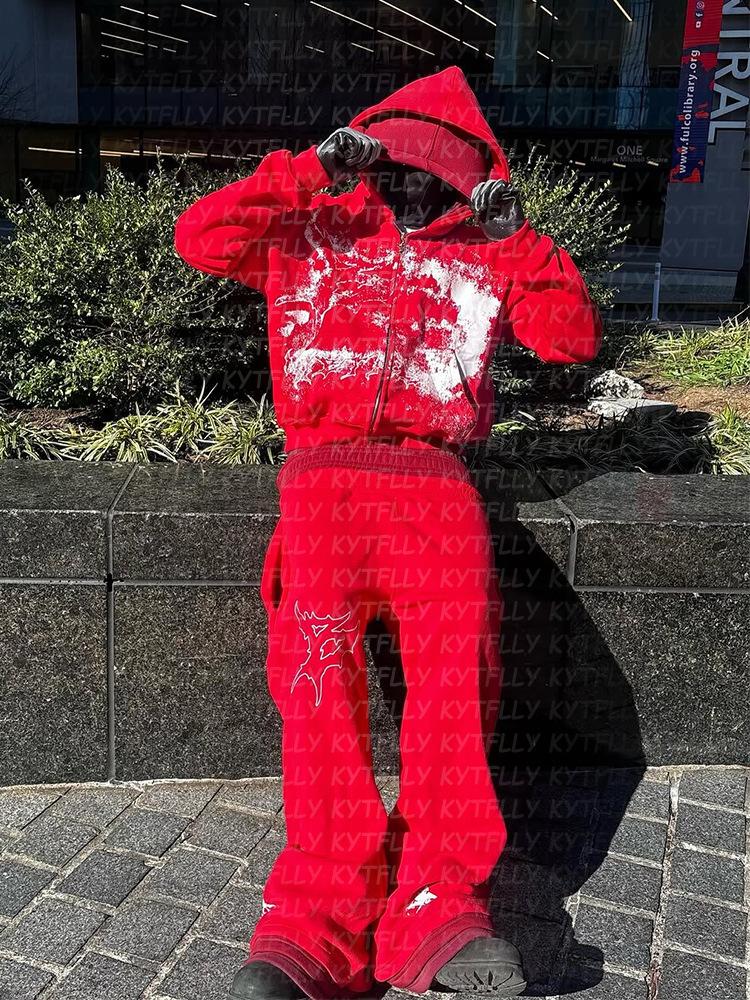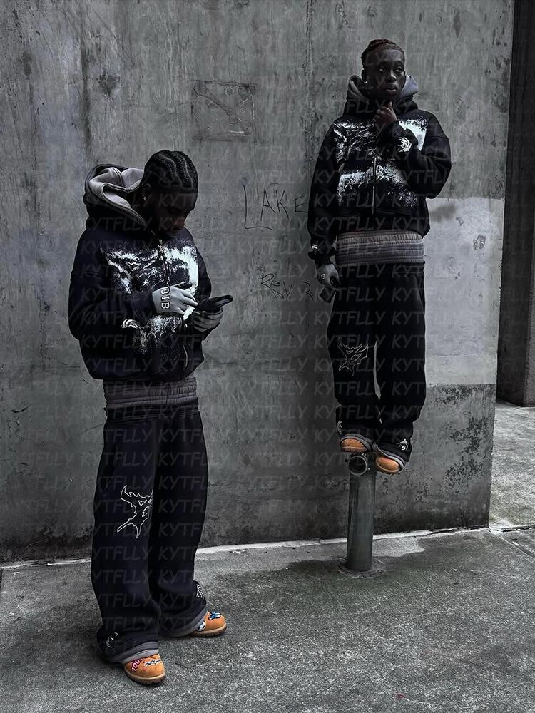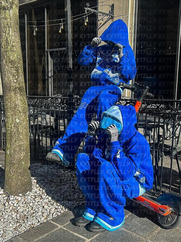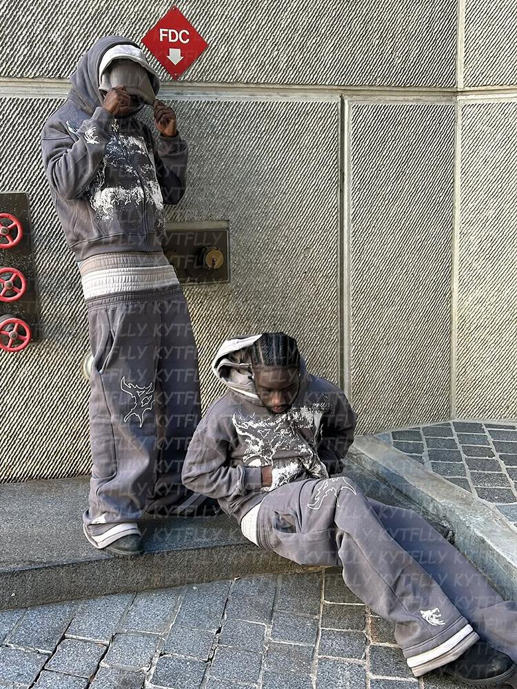 Novo terno com capuz de três camadas, moda europeia e americana, design de calça com capuz, personalidade da moda de rua, terno masculino e feminino