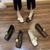 Sapatos femininos retrô franceses para viagem, primavera e outono 2024, novos, com cabeça quadrada, strass, fivela quadrada, boca rasa, sapatos baixos