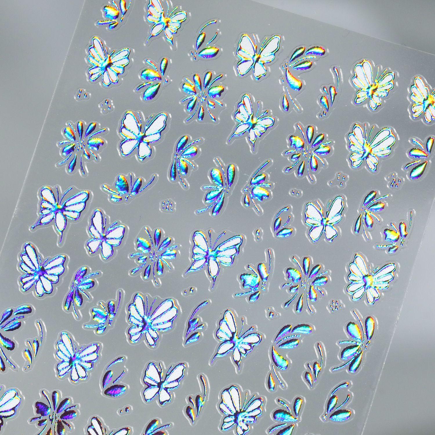 Adesivos Coloridos a Laser de Arte de Unhas de Borboleta 5D Estampados Estéreo Sonhadores Borboleta Aurora Adesivos de Unhas Joias Estilo Tj