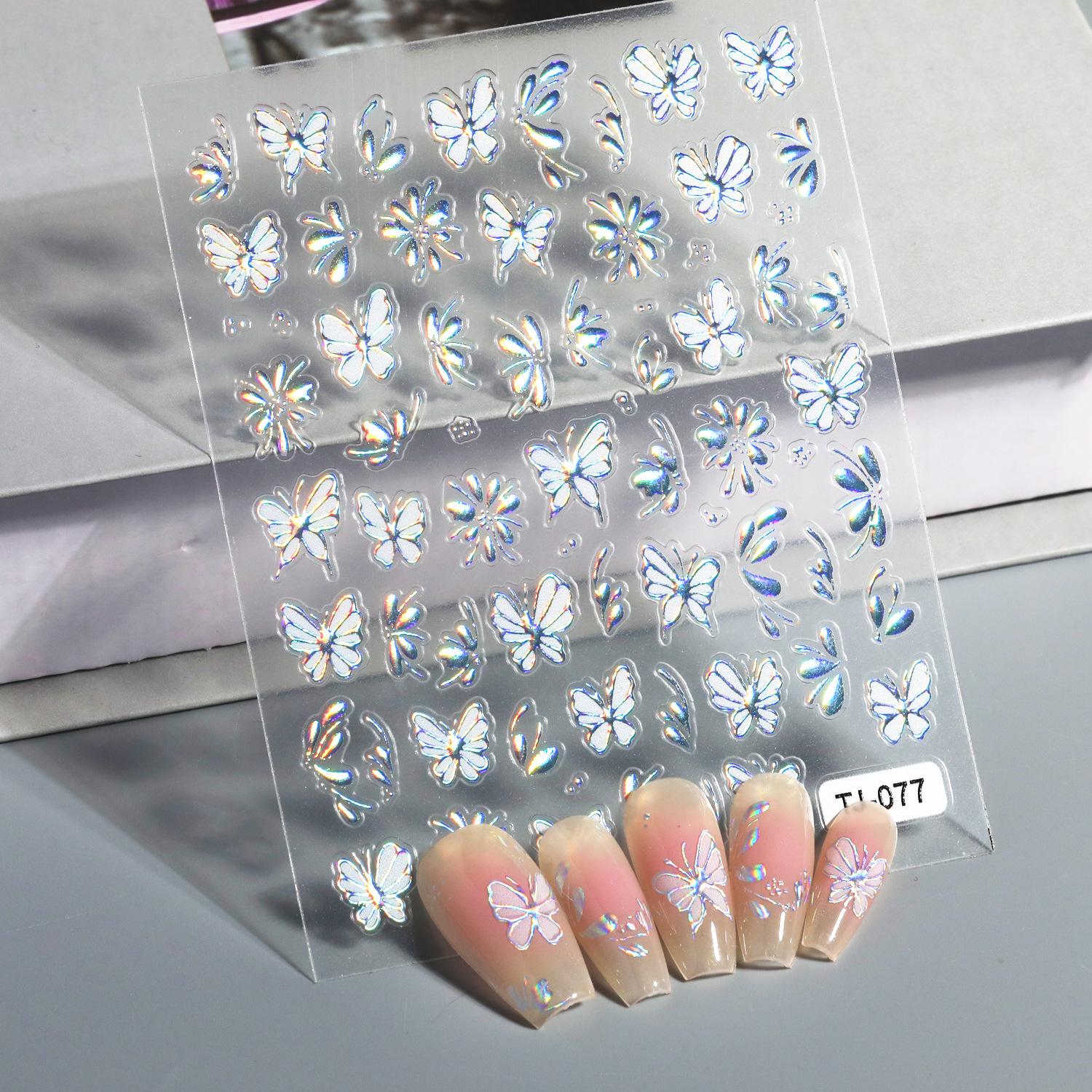 Compre Adesivos Coloridos a Laser de Arte de Unhas de Borboleta 5D Estampados Estéreo Sonhadores Borboleta Aurora Adesivos de Unhas Joias Estilo Tj no atacado no Joom.pro