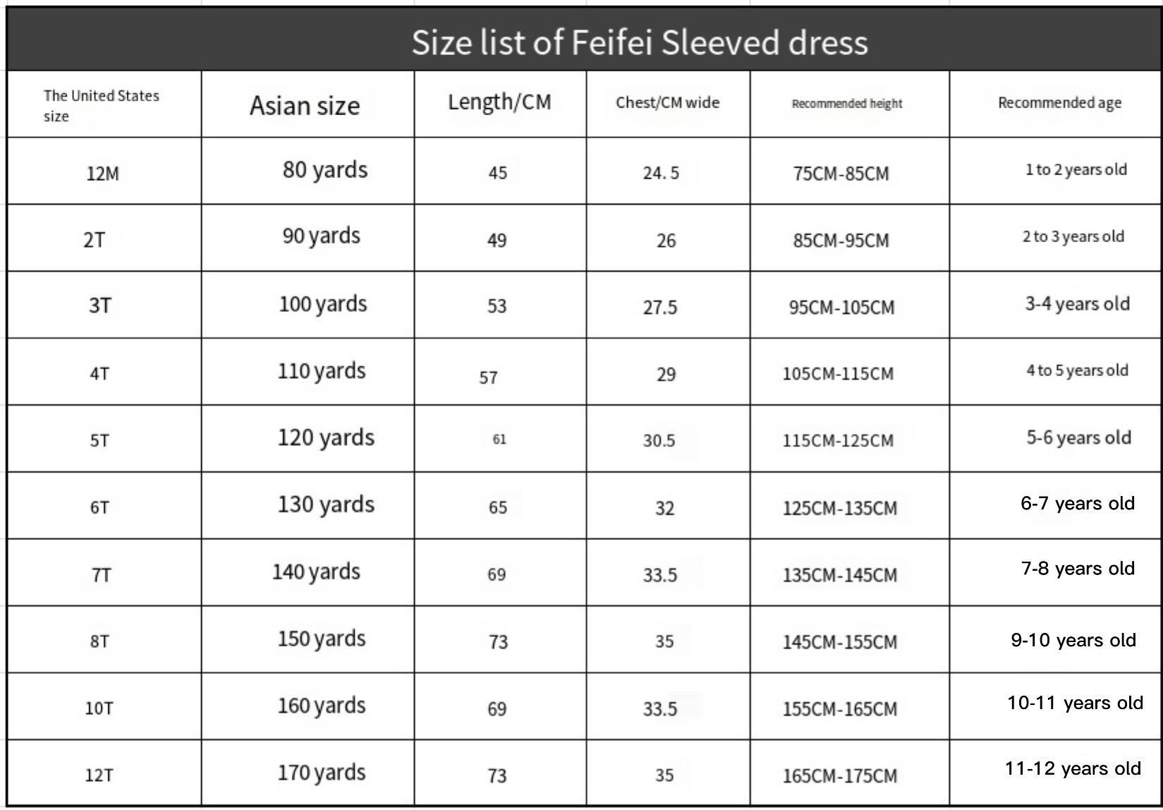 100cm, 110cm, 120cm, 130cm, 140cm, 150cm