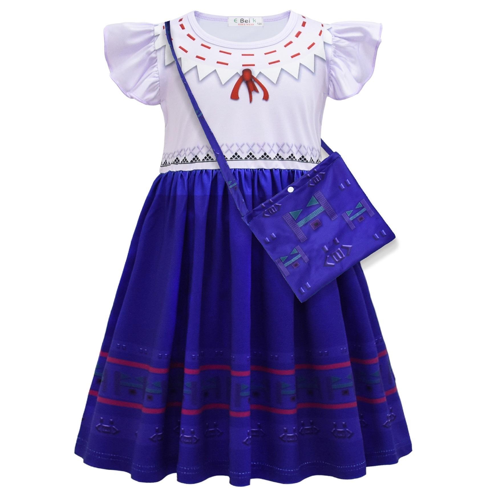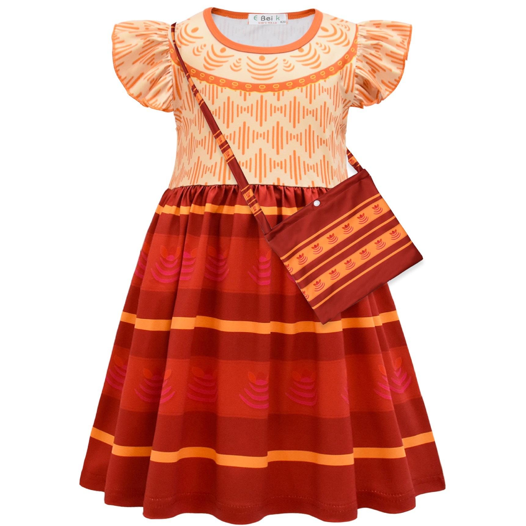 Vestido de Princesa Manga Bufante Pequena Mágica Mais Vendido Transfronteiriço com Bolsa Meninas Halloween cos Vestido Casual