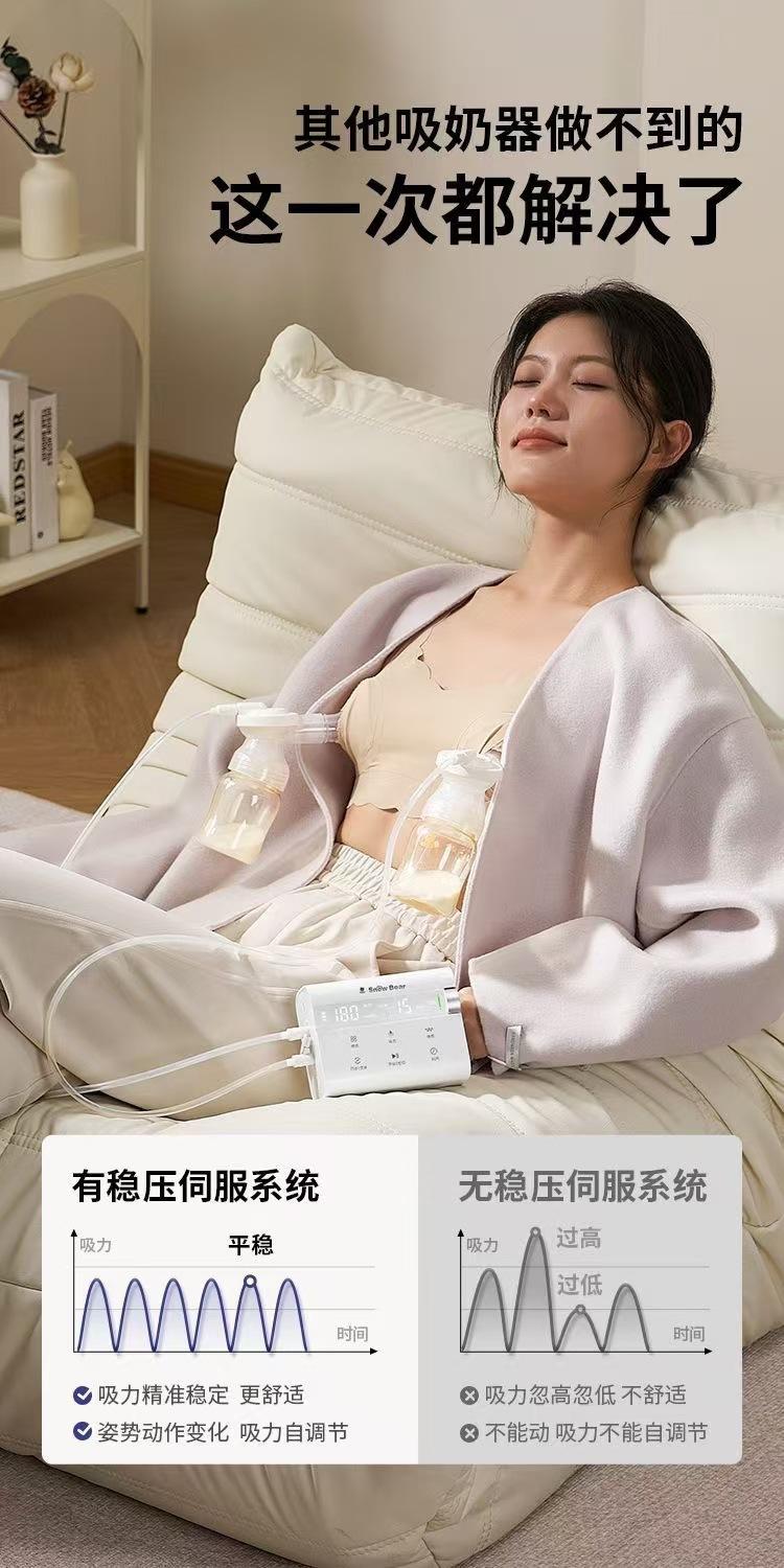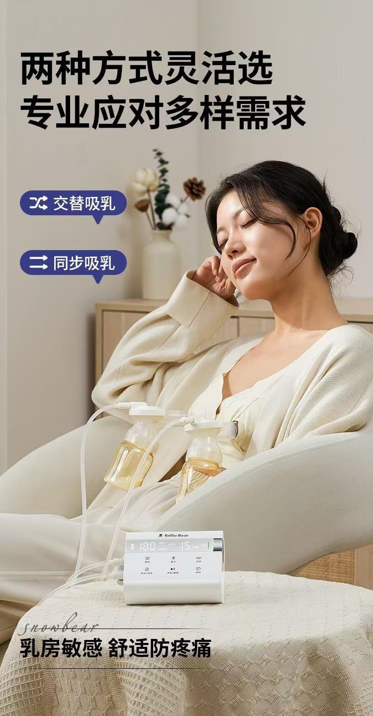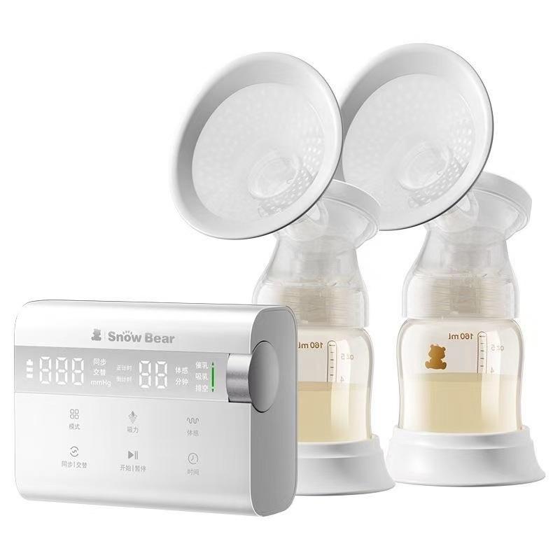 Bomba tira-leite bilateral pequena urso branco, mãos livres, leite materno silencioso, ordenha automática, ajuste infinito 3061
