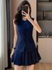 Vestido de manga curta preto puro da moda verão 2021 para mulheres, roupa profissional com decote em V, joalheria, salão de beleza, roupas de trabalho