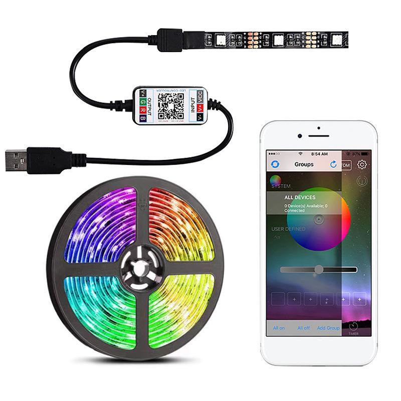 Fita de Luz LED 5V Rgb Conjunto 5050 Baixa Tensão USB Luz de Fundo para TV Bluetooth Música Fita de Luz LED Dimerizável