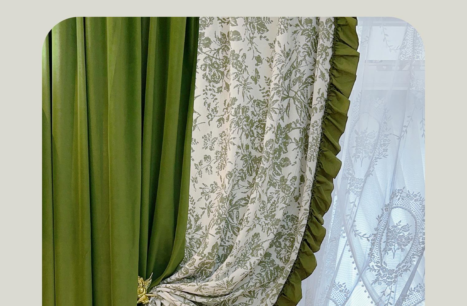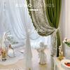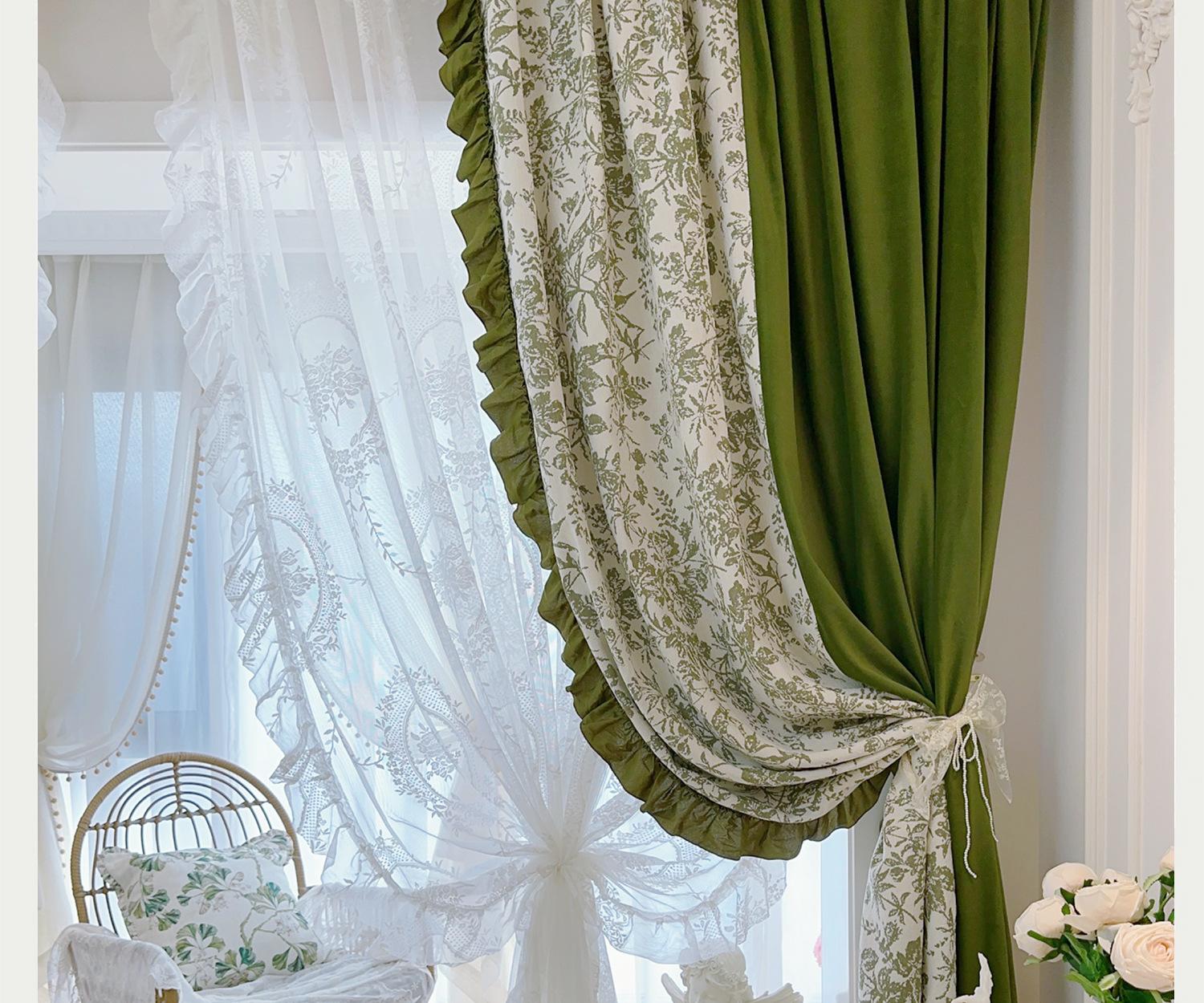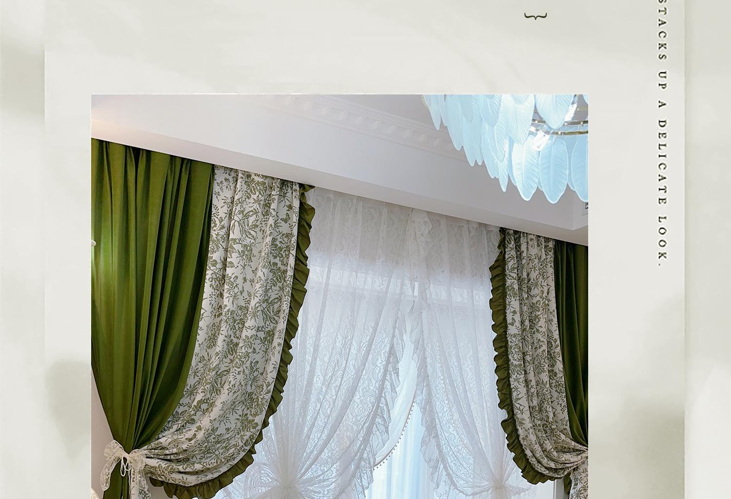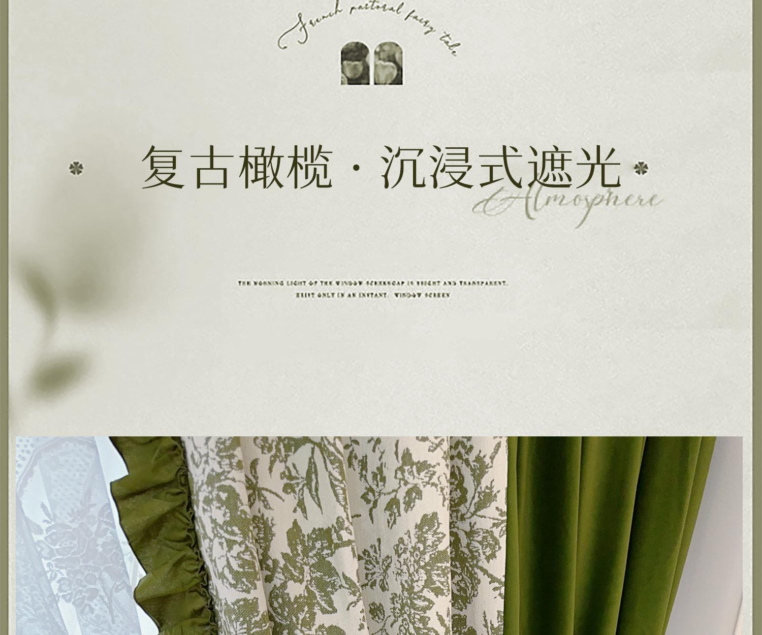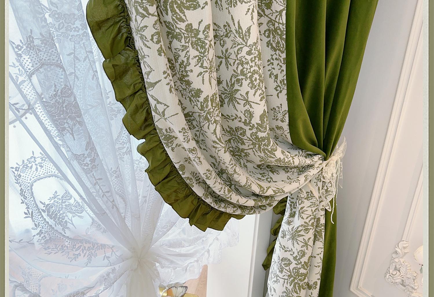 Cortina de veludo jacquard chenille verde oliva estilo francês com videiras sala de estar quarto janela saliente janela saliente cortina de gaze vintage