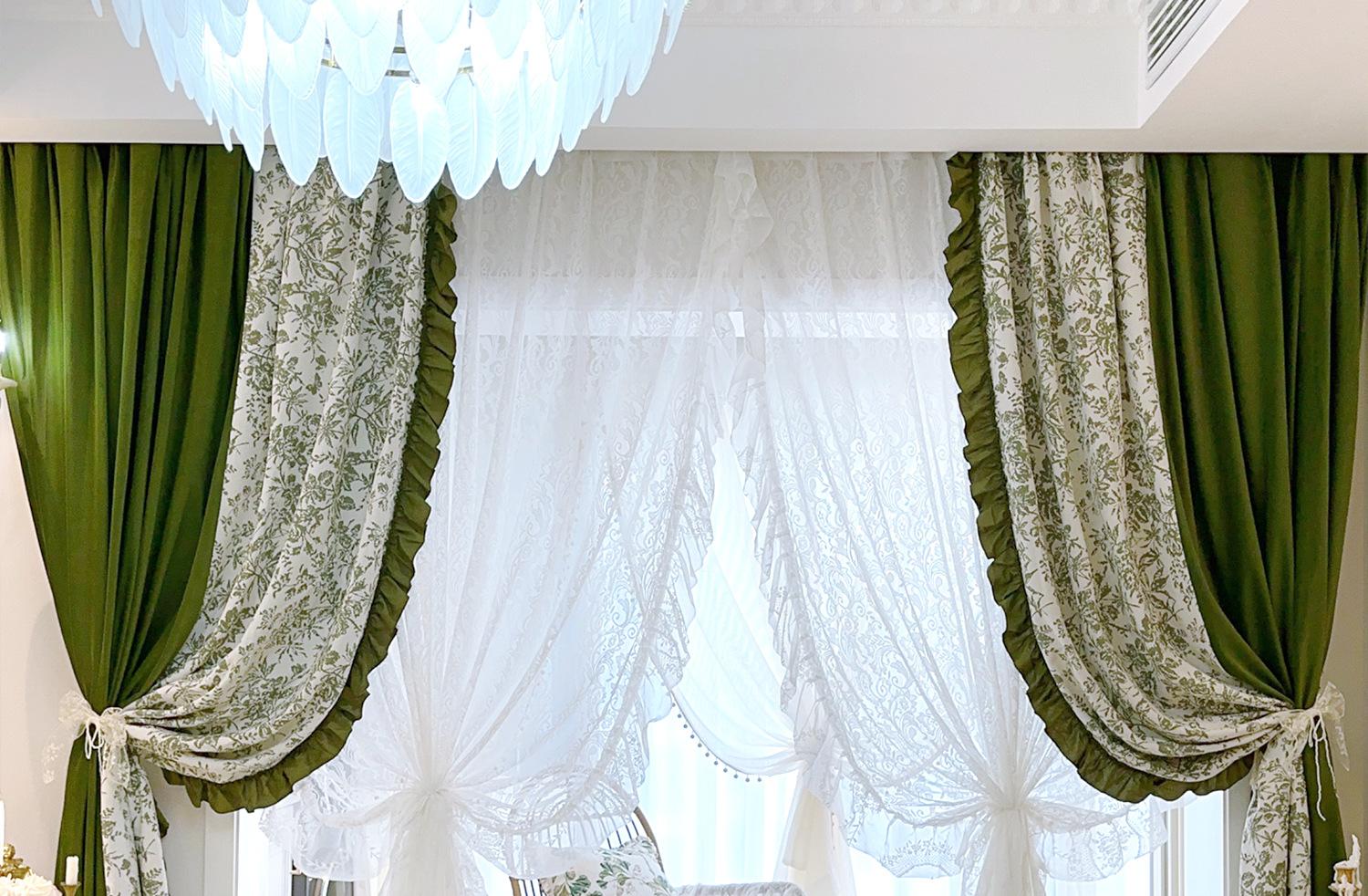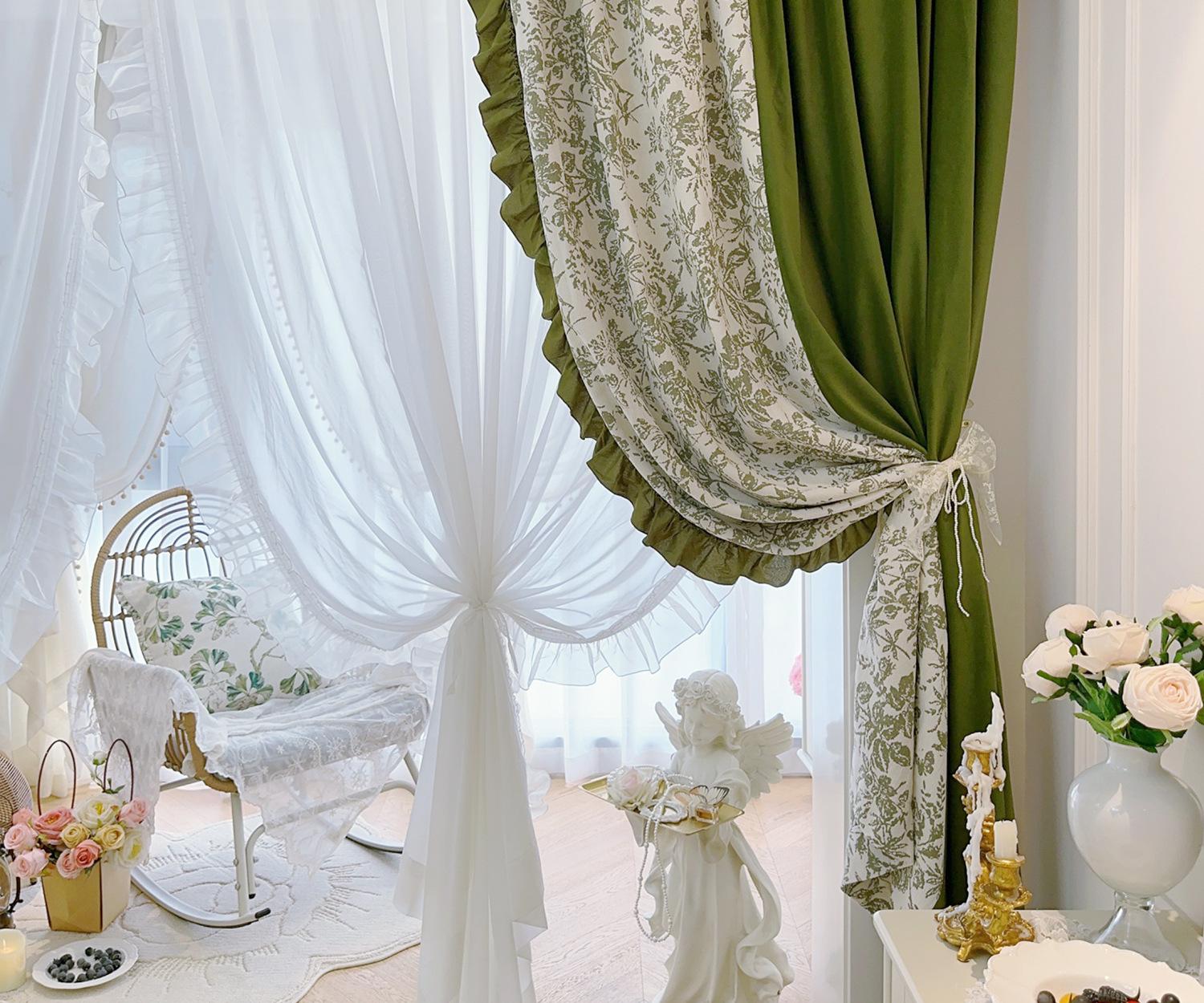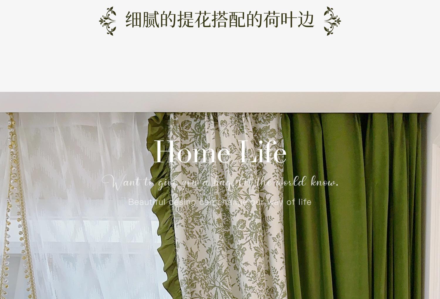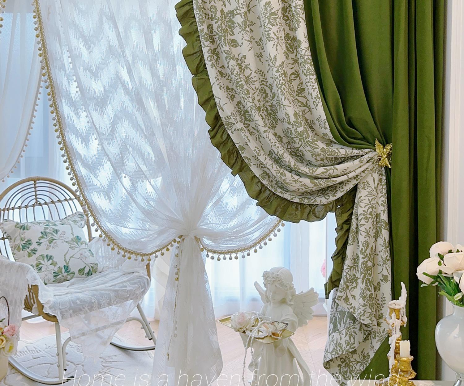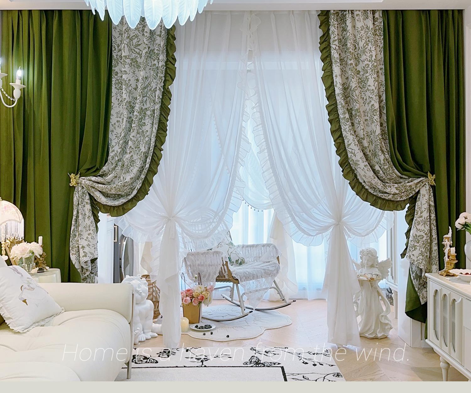 Cortina de veludo jacquard chenille verde oliva estilo francês com videiras sala de estar quarto janela saliente janela saliente cortina de gaze vintage