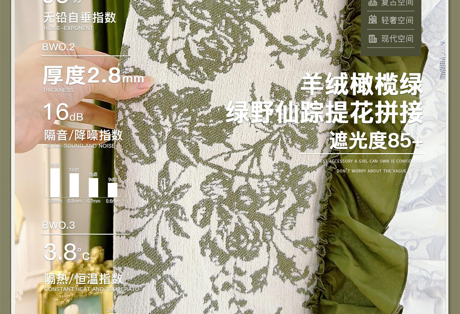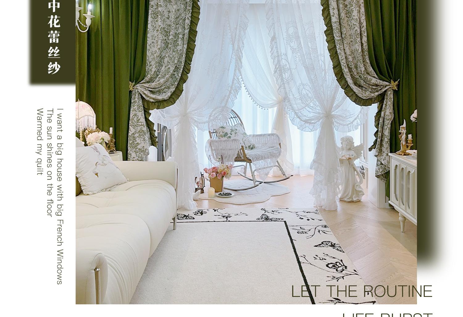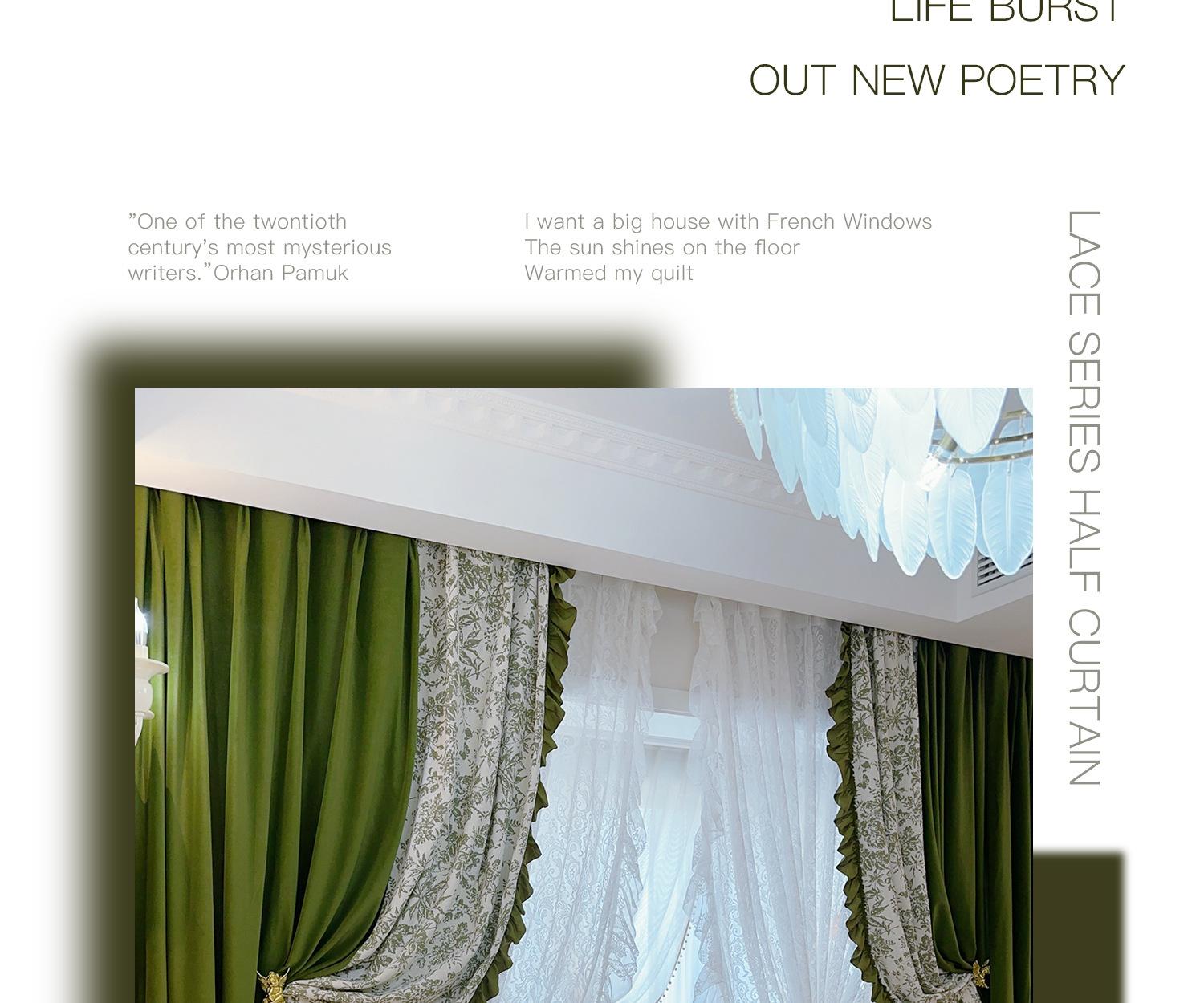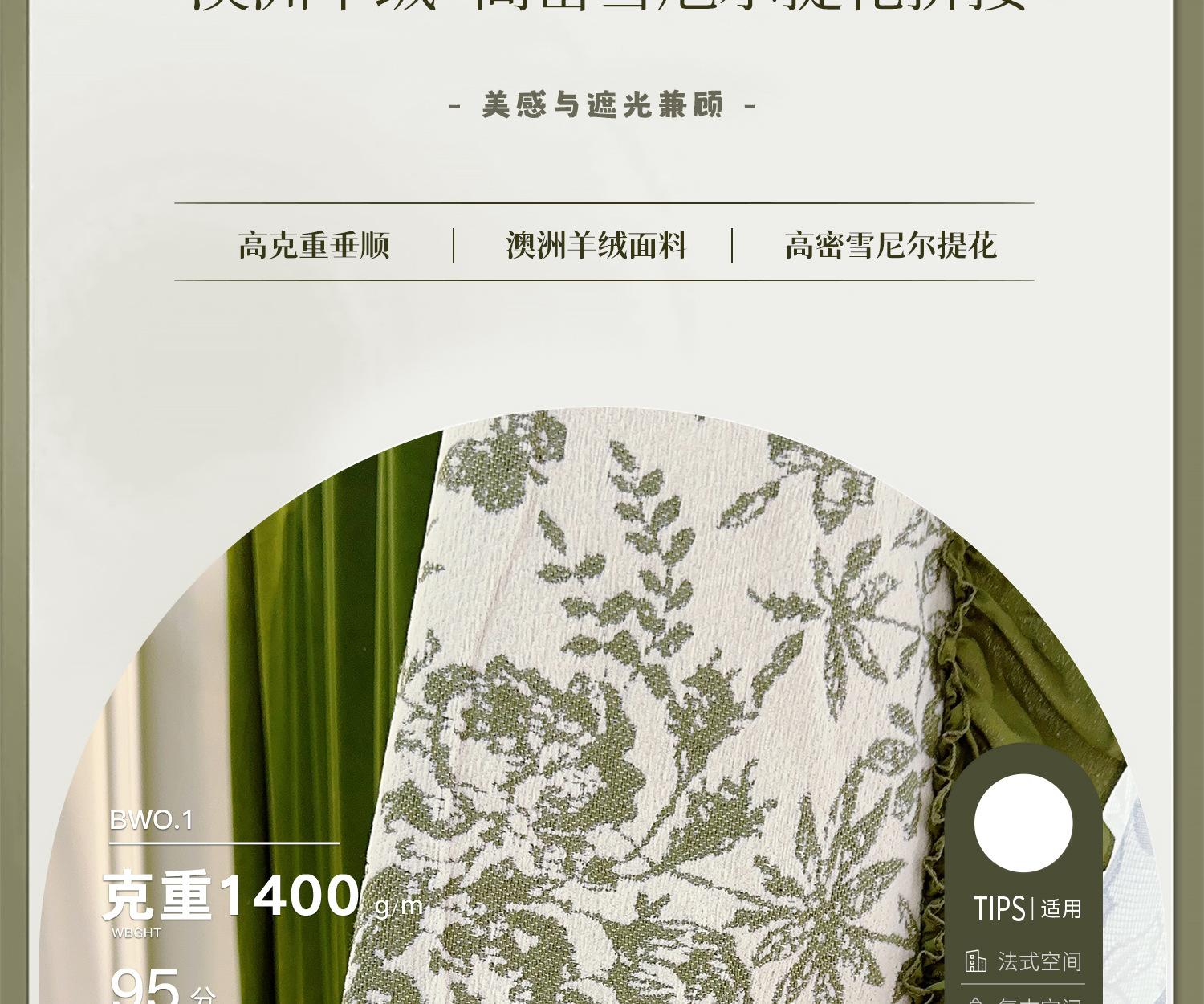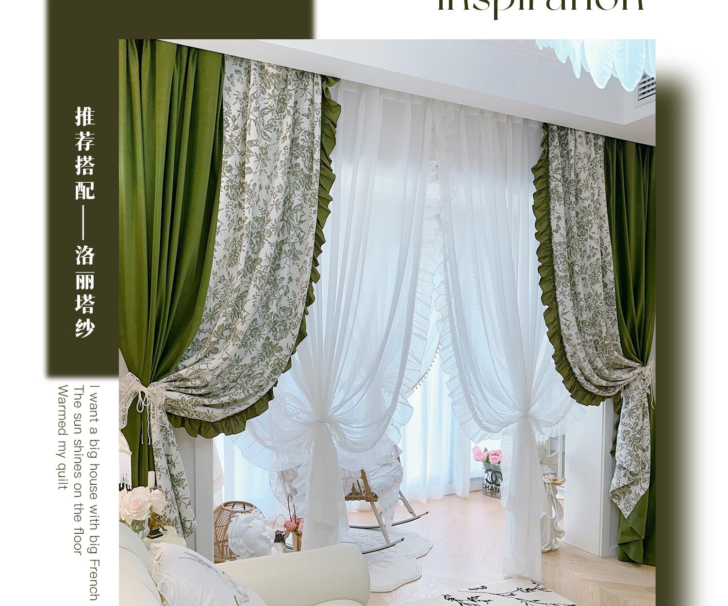 Cortina de veludo jacquard chenille verde oliva estilo francês com videiras sala de estar quarto janela saliente janela saliente cortina de gaze vintage