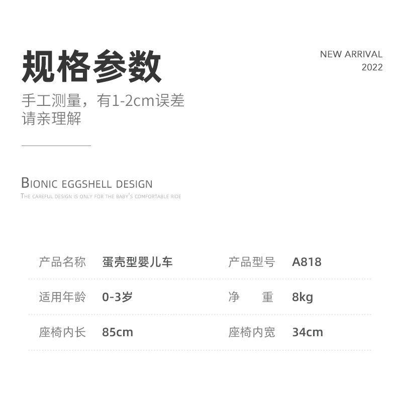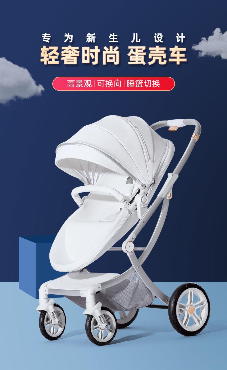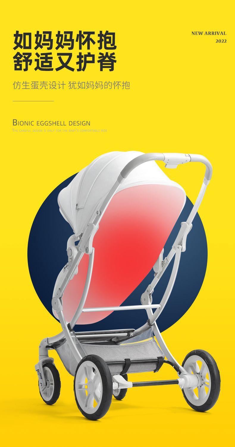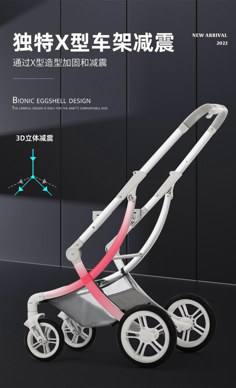 Carrinho de bebê alto com assento e deitar, leve, dobrável, bidirecional, com absorção de choque, tipo casca de ovo para recém-nascidos