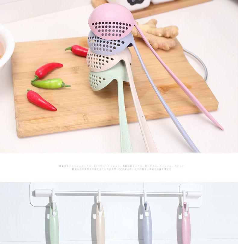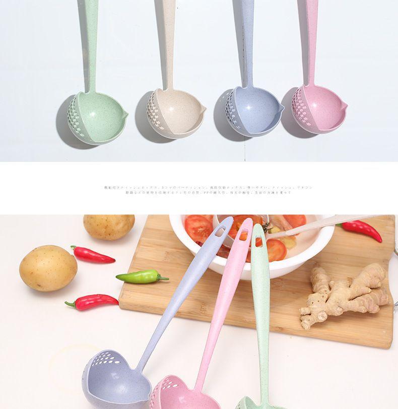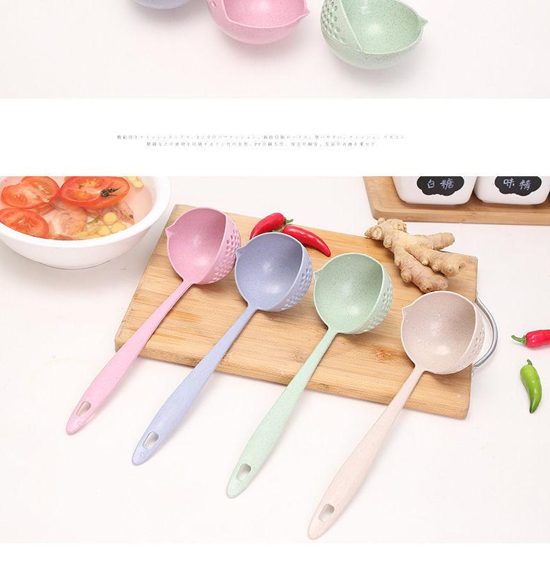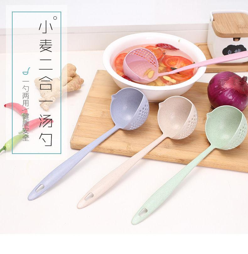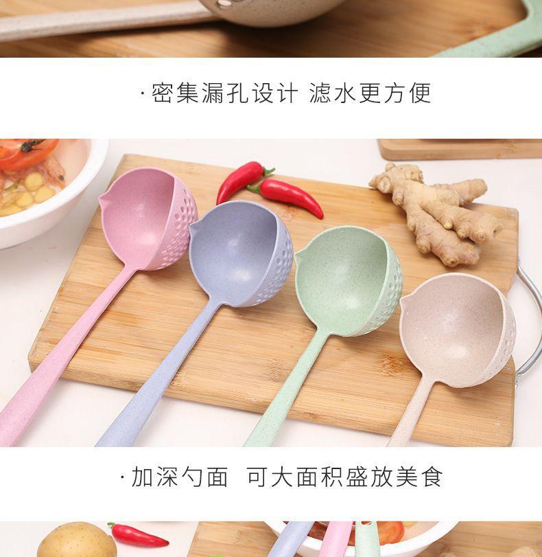 Colher de sopa escorredor 2 em 1 doméstico espessado cabo longo filtro plástico cozinha sopa panela quente trigo palha colher