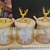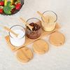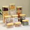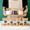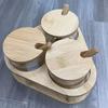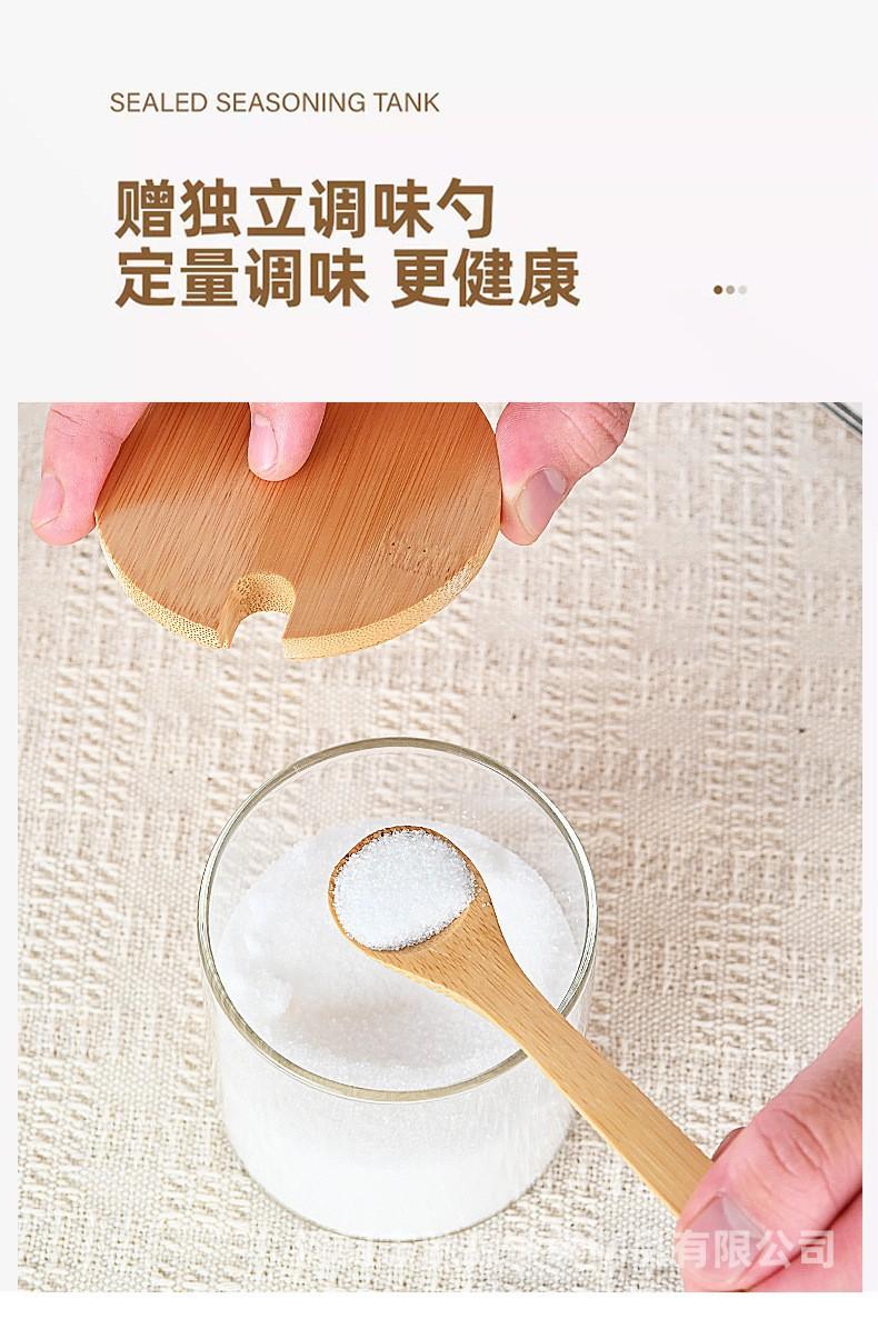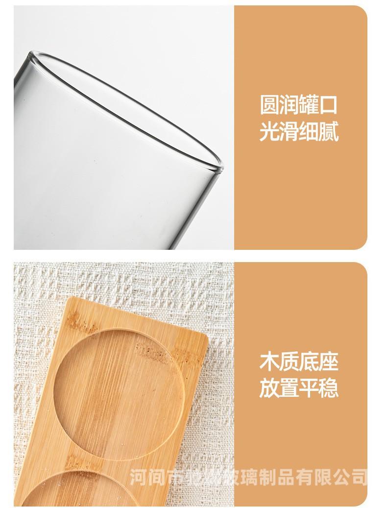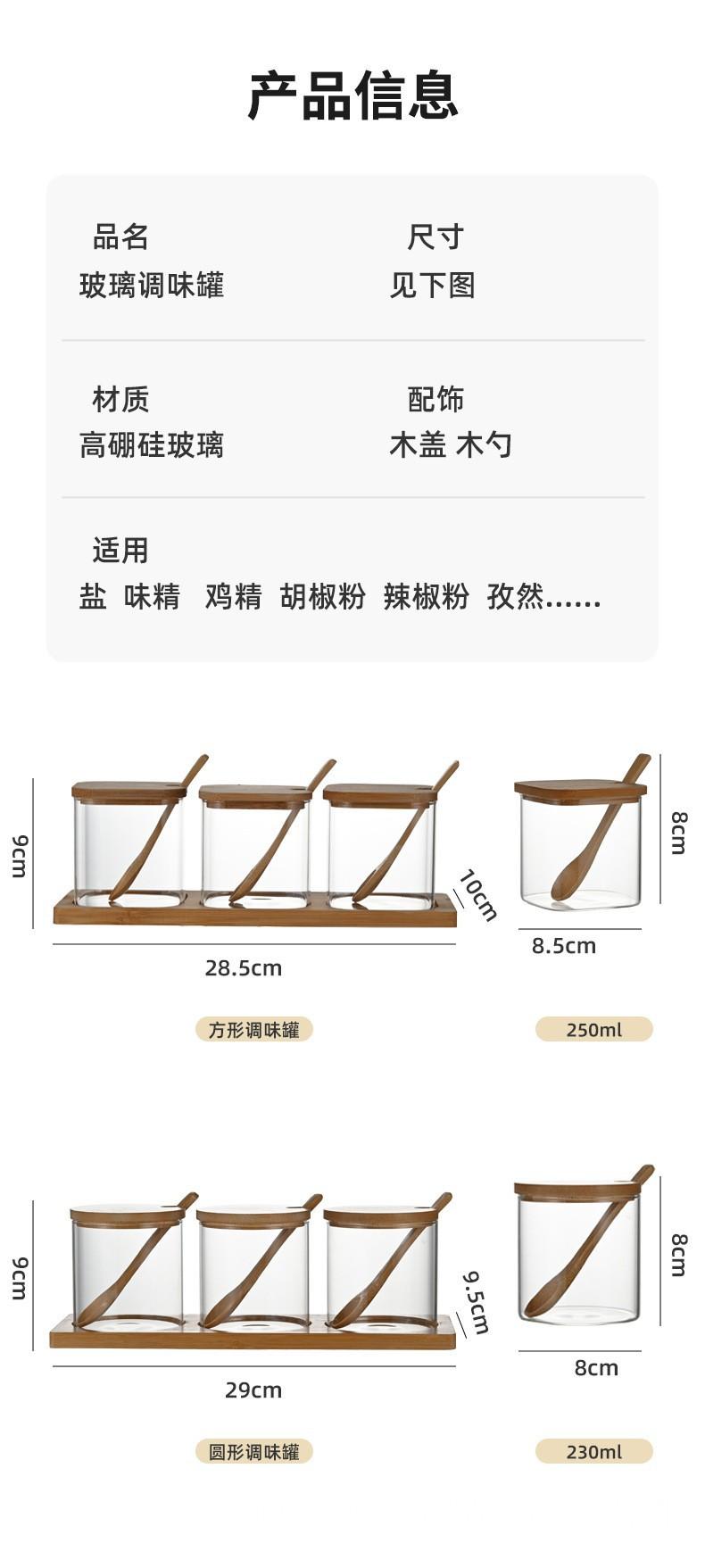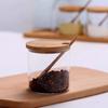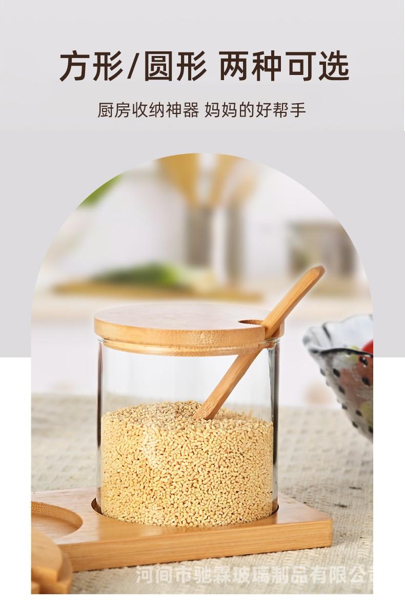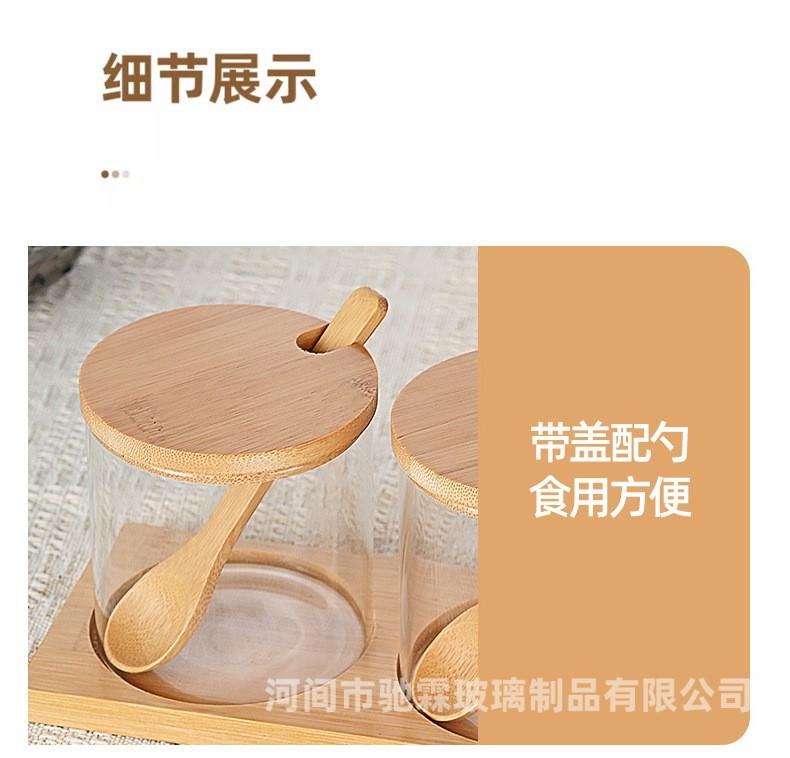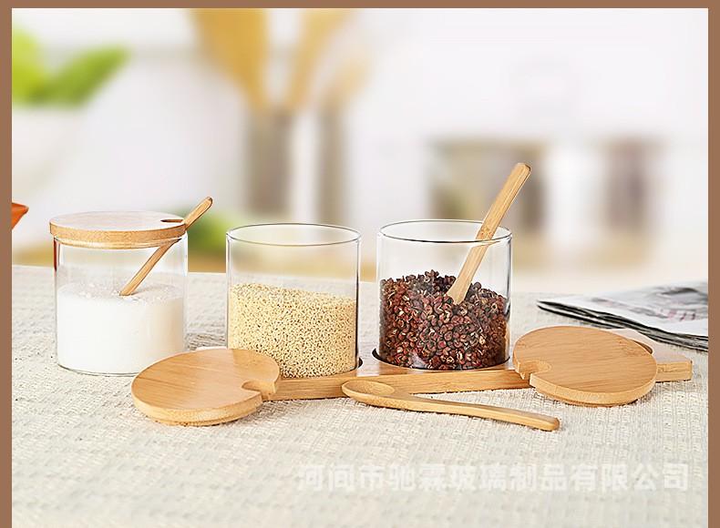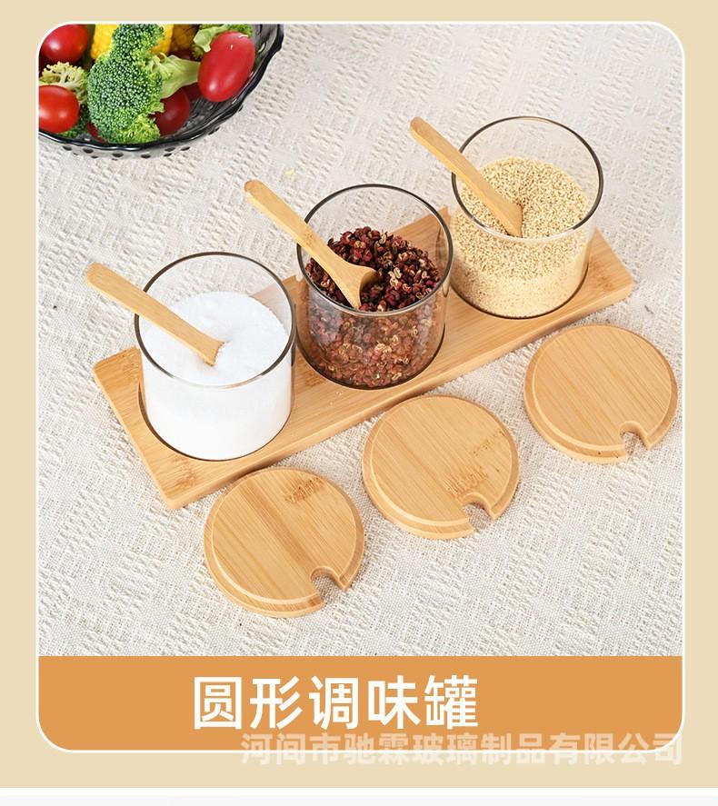 Pote de tempero de vidro resistente a altas temperaturas com alto teor de borosilicato, conjunto de três caixas para tempero de sal e açúcar, tampa de bambu e madeira, pote de vidro para armazenamento