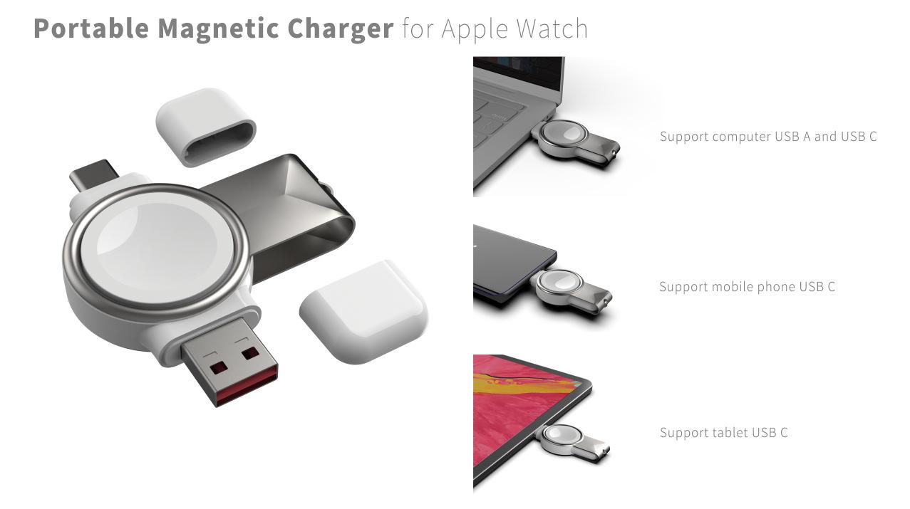 Adequado para carregador Apple Watch, carregamento rápido, carregador sem fio dois em um, interface dupla portátil, carregamento magnético